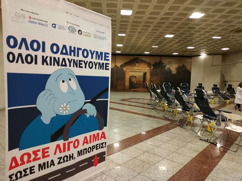 Με θετική ανταπόκριση από το κοινό ολοκληρώθηκε η Εθελοντική Αιμοδοσία για τους τραυματίες από τροχαία συμβάντα, που διοργανώθηκε από το Ινστιτούτο Οδικής Ασφάλειας (Ι.Ο.ΑΣ.) «Πάνος Μυλωνάς» σε συνεργασία με το Γενικό Νοσοκομείο Αθηνών «Κοργιαλένειο-Μπενάκειο Ε.Ε.Σ.», την Κυριακή 18 Νοεμβρίου 2018 στον Σταθμό του Μετρό «Σύνταγμα».