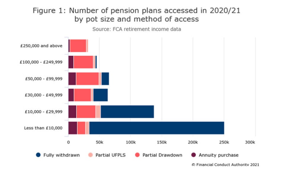 Παρακάτω παρατίθεται γράφημα για το ποσοστό των ασφαλισμένων του Ηνωμένου Βασιλείου (ΗΒ) που επιλέγουν διάφορες μορφές λήψης της παροχής (από εφάπαξ μέχρι και σύνταξη). Αξίζει να σημειωθεί ότι στο ΗΒ, η κυβέρνηση έχει θεσμοθετήσει ένα ευέλικτο πλαίσιο απονομής του συσσωρευμένου προϊόντος των ατομικών λογαριασμών των αντίστοιχων με τα ημεδαπά ΤΕΑ, για τα οποία μάλιστα ισχύει η υποχρέωση της «αυτόματης εγγραφής» των εργαζομένων και όχι της απλής προαιρετικότητας όπως στην Ελλάδα: