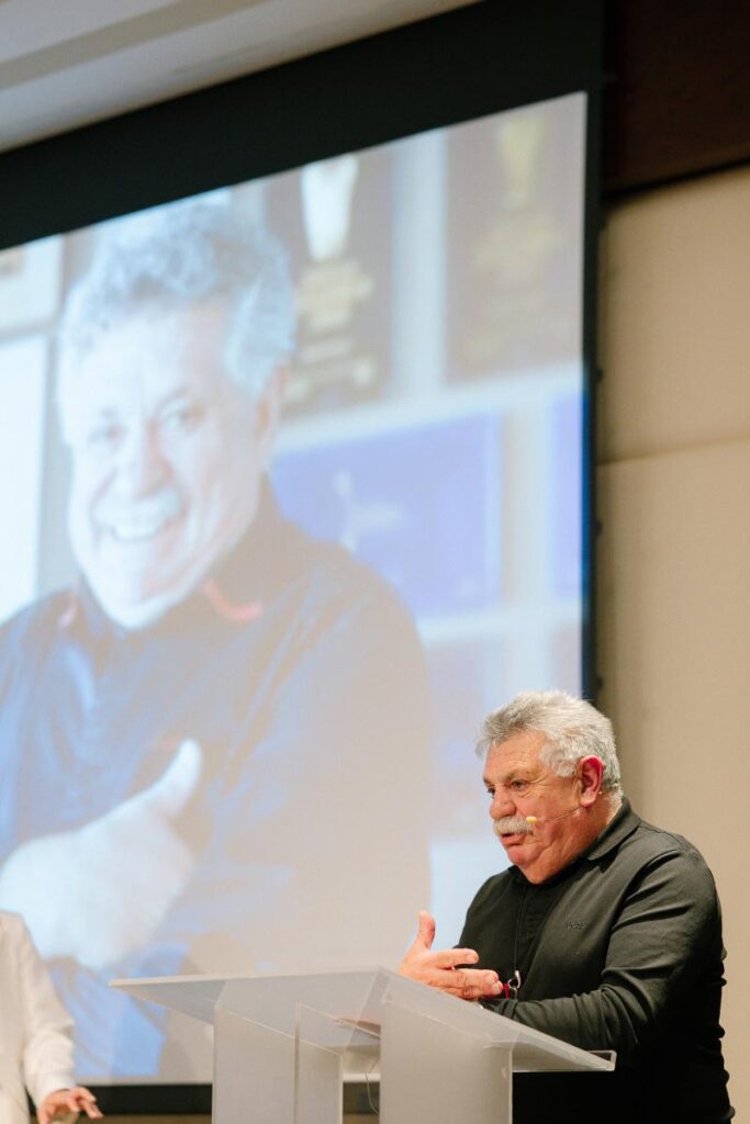 Προσκεκλημένος-έκπληξη, ο καταξιωμένος σεφ κ. Λευτέρης Λαζάρου, ο πρώτος Έλληνας σεφ που βραβεύτηκε με αστέρι Michelin, ο οποίος με τον γλαφυρό του λόγο μίλησε καταρχάς για τα παιδικά του χρόνια στον Πειραιά και για τα στάδια της επαγγελματικής του εξέλιξης, από το πρώτο του μαγαζί μέχρι σήμερα. Στη συνέχεια, μετείχε σε έναν διάλογο ερωταποκρίσεων για τα ιδιαίτερα χαρακτηριστικά και τις δεξιότητες που πρέπει να έχει ένας νέος και φιλόδοξος επαγγελματίας, τονίζοντας ιδιαίτερα ότι, αν κάποιος θέλει να πετύχει, θα πρέπει αφενός να δημιουργεί συνεχώς και αφετέρου να διαφοροποιείται από τους συναδέλφους του.