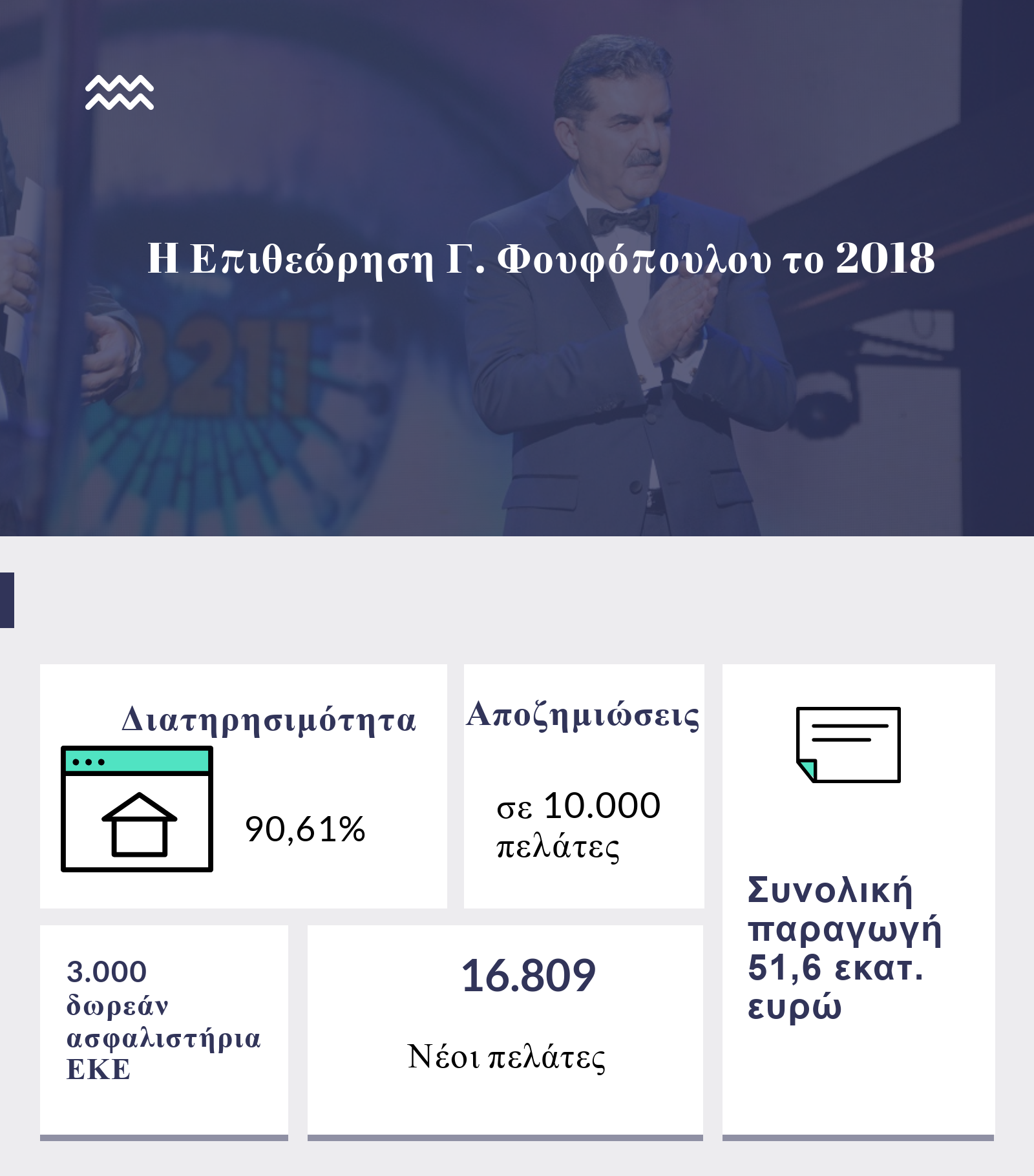 Μέσα στο 2018 οι άνθρωποι της Επιθεώρησης συνέβαλαν στην αποζημίωση 10.000 υποθέσεων πελατών – έχοντας μηδενικό νούμερο στις καταγγελίες συμβολαίων- και παρήγαγαν 7 εκατ. ασφάλιστρα από νέες εργασίες. Βραβεύοντας την 1η Μαρτίου τους κορυφαίους συνεργάτες του στο Αθηνών Αρένα, ο Γ. Φουφόπουλος, επικεφαλής της Επιθεώρησης μίλησε για την για τους συνεργάτες του, την διαδρομή του γραφείου στον ασφαλιστικό κλάδο, τους στόχους που επιτεύχθηκαν και τους νέους που τίθενται στην εποχή της ψηφιακής επικοινωνίας. “Φτάσε εκεί που δεν μπορείς”είπε χαρακτηριστικά περικλείοντας στη φράση του Ν. Καζαντζάκη τη φιλοσοφία της ομάδας του όλα αυτά τα χρόνια.