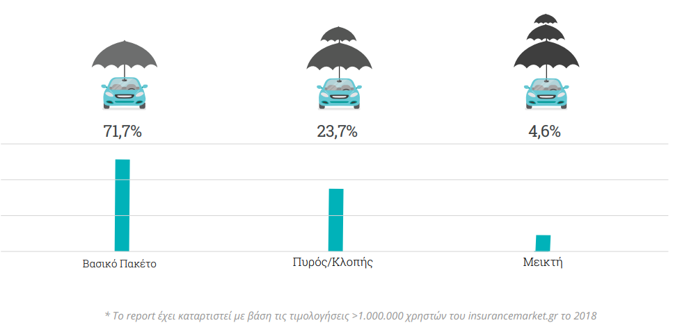 Σύμφωνα με τα στοιχεία της έρευνας περίπου 7 στους 10 καταναλωτές έχουν βασικά πακέτα ασφάλισης και περισσότεροι από 2 στους 10 έχουν καλύψεις πυρός και κλοπής.