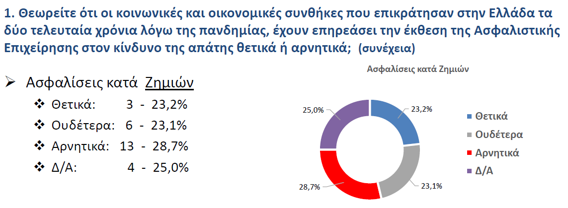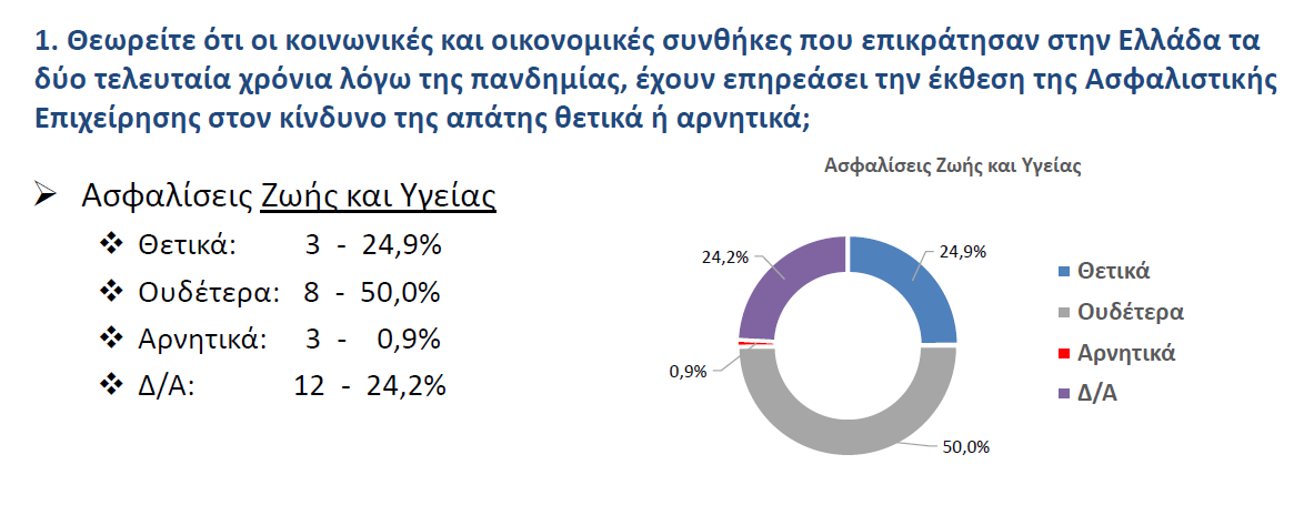 Συμπεραίνεται από την πλειοψηφία των απαντήσεων ότι η πανδημία έχει επηρεάσει αρνητικά την έκθεση των Ασφαλιστικών Επιχειρήσεων στον κίνδυνο της ασφαλιστικής απάτης.