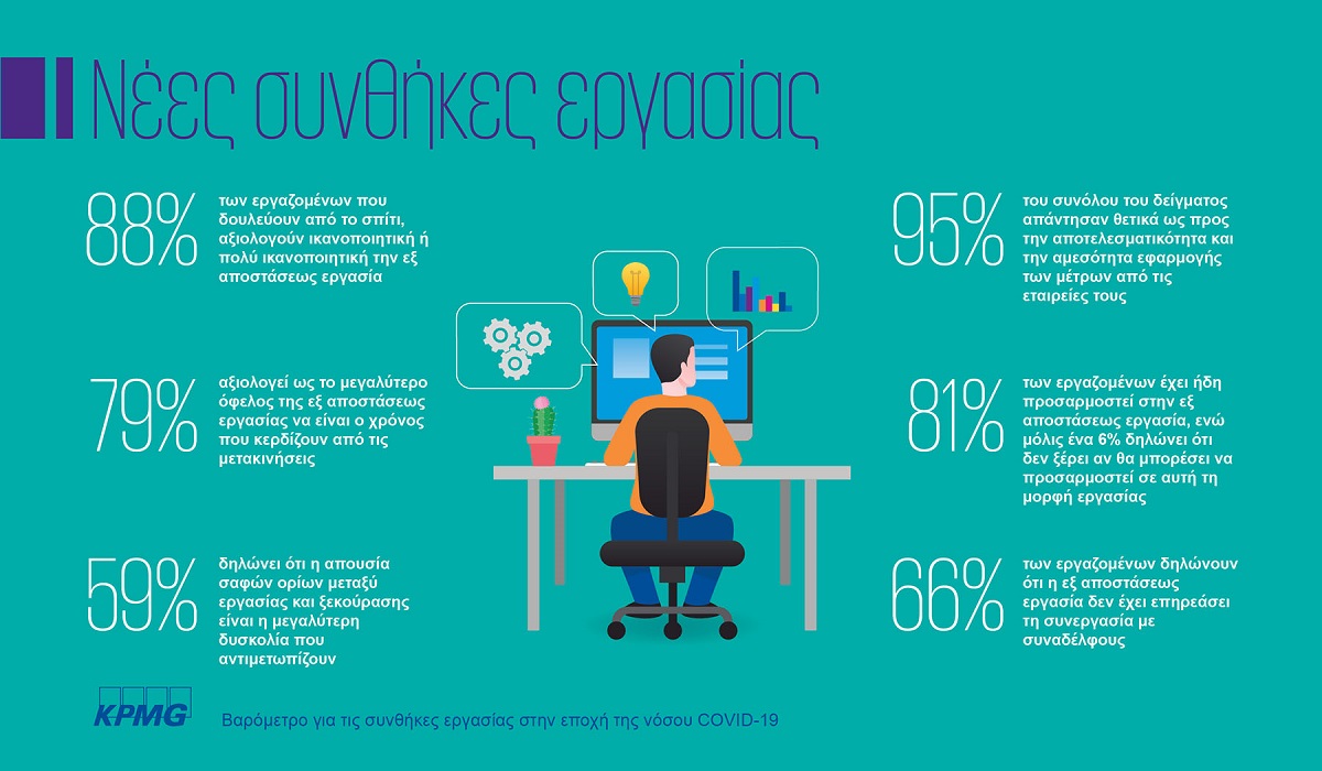 H KPMG πραγματοποίησε έρευνα με τίτλο «Βαρόμετρο για τις συνθήκες εργασίας στην εποχή του COVID-19», η οποία διεξήχθη από το συμβουλευτικό τμήμα Ανθρώπινου Δυναμικού της.