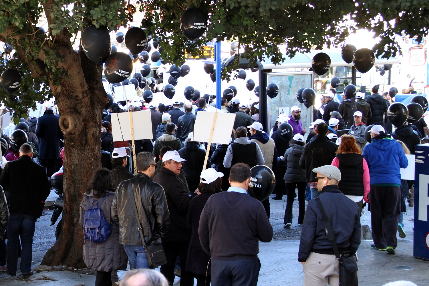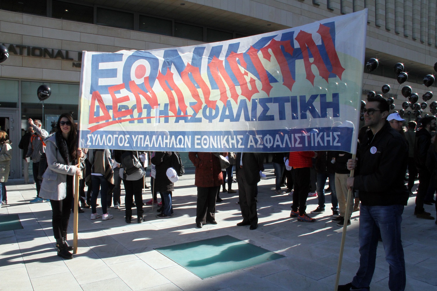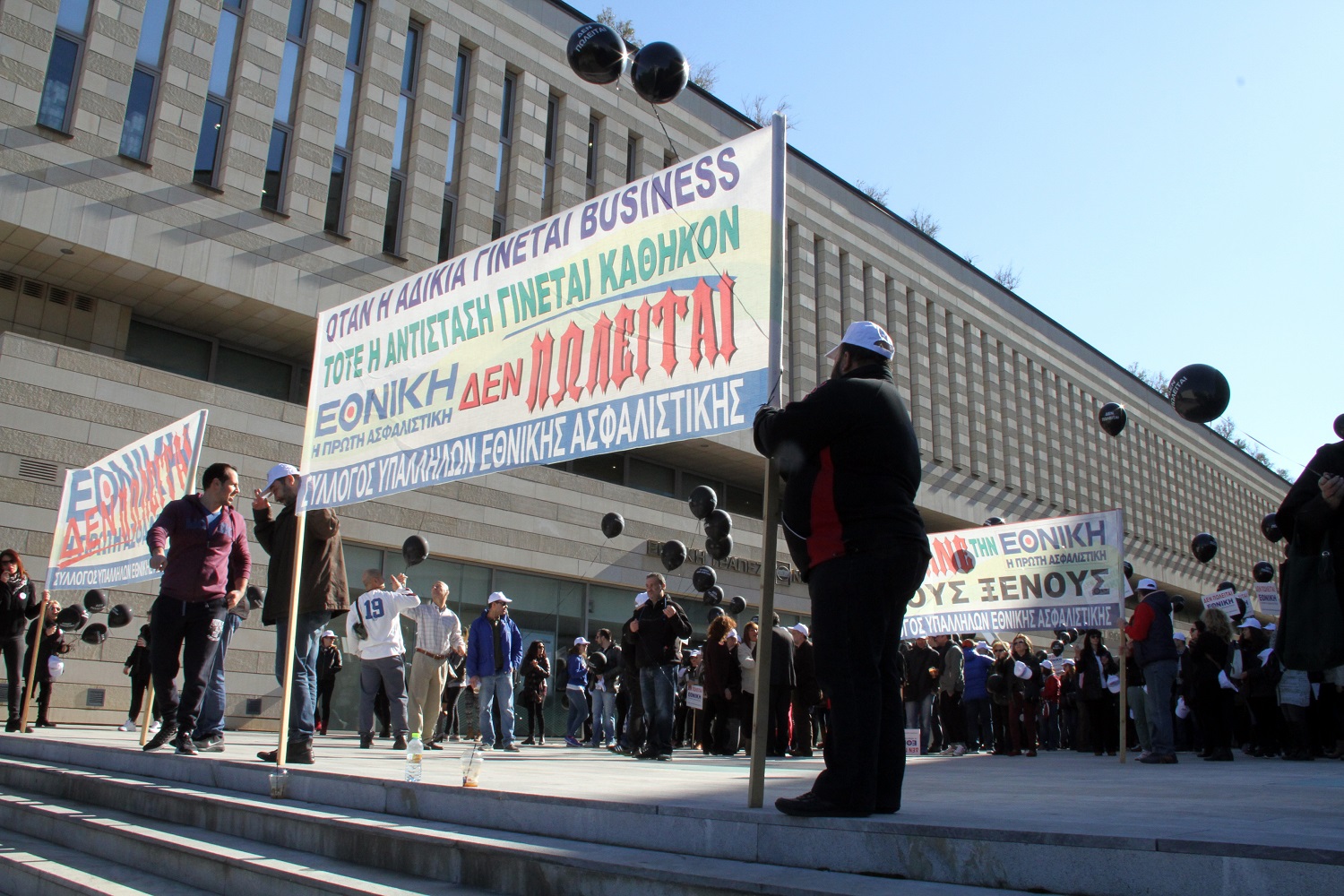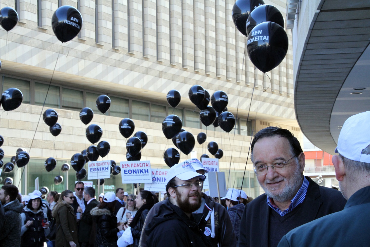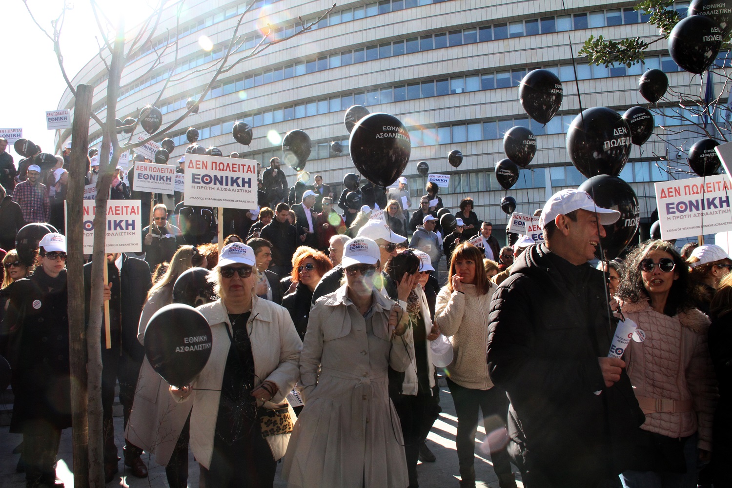 Περίπου 250 με 300 εργαζόμενοι συγκεντρώθηκαν το πρωί στην είσοδο της Εθνικής Ασφαλιστικής, κρατώντας συμβολικά μαύρα μπαλόνια για να στηρίξουν την παραμονή της Εθνικής Ασφαλιστικής στην τράπεζα και να να αποτρέψουν τις διαδικασίες που δρομολογούνται.