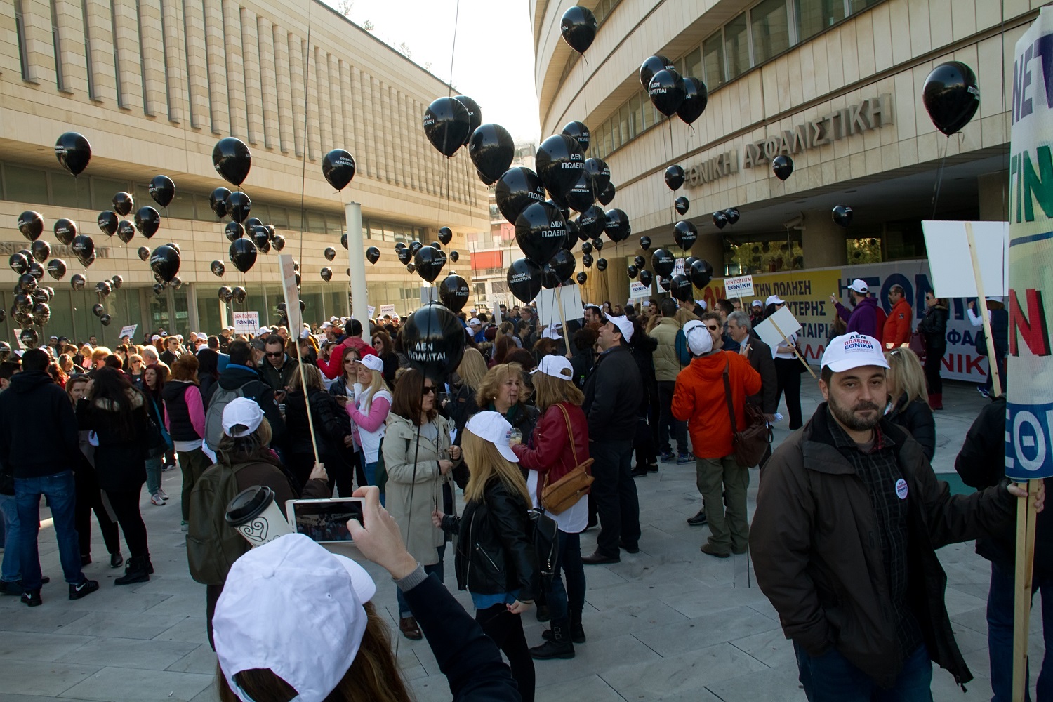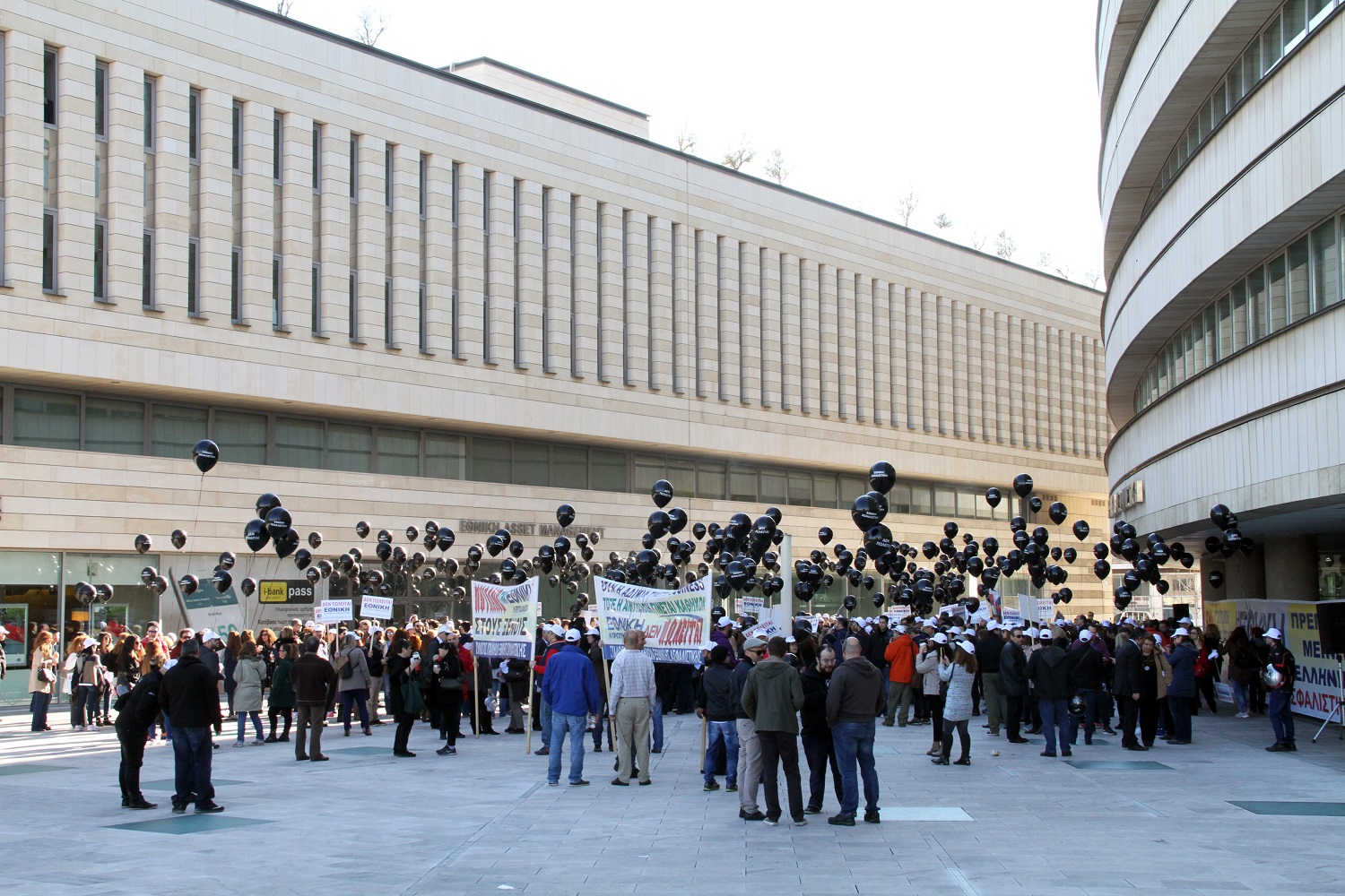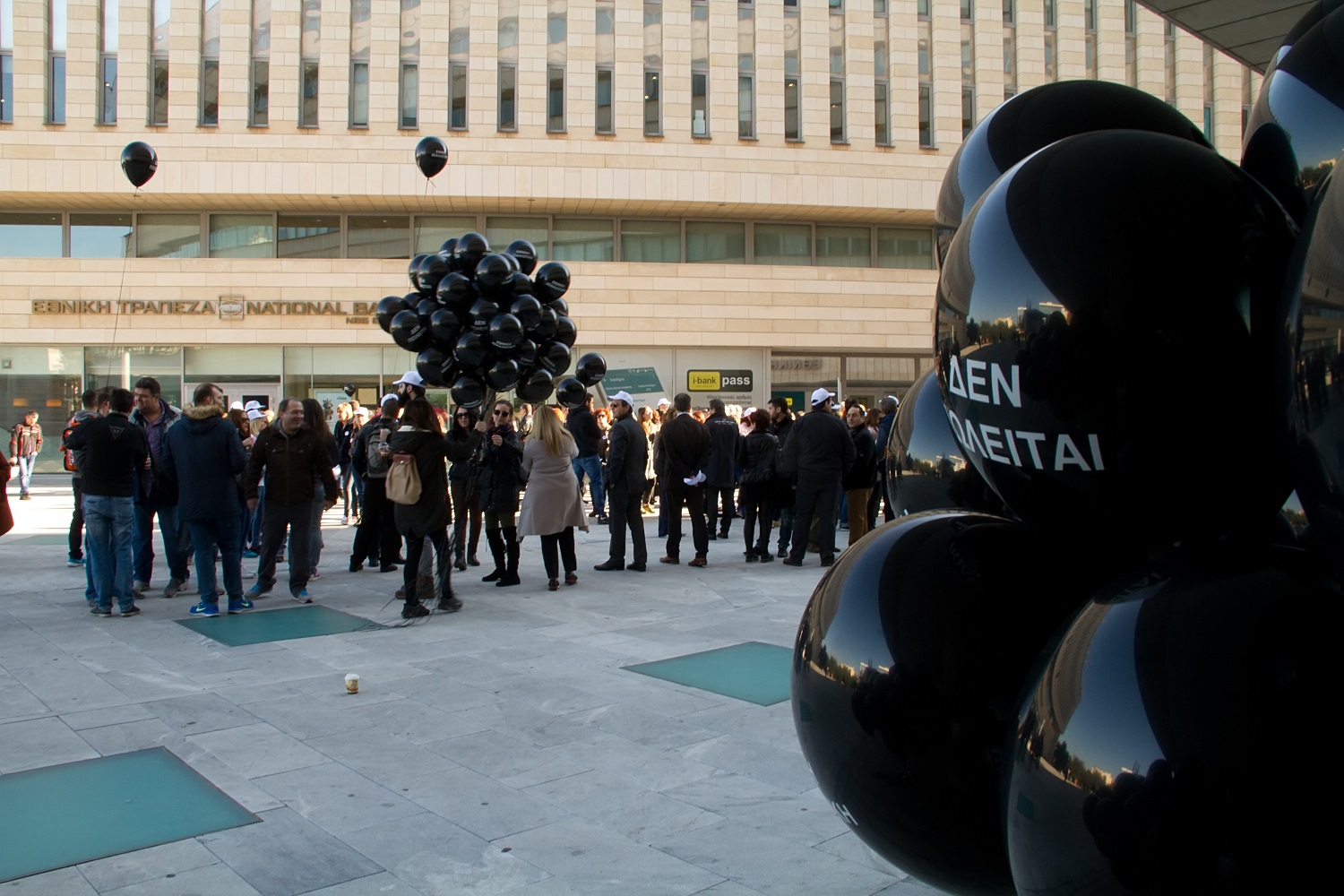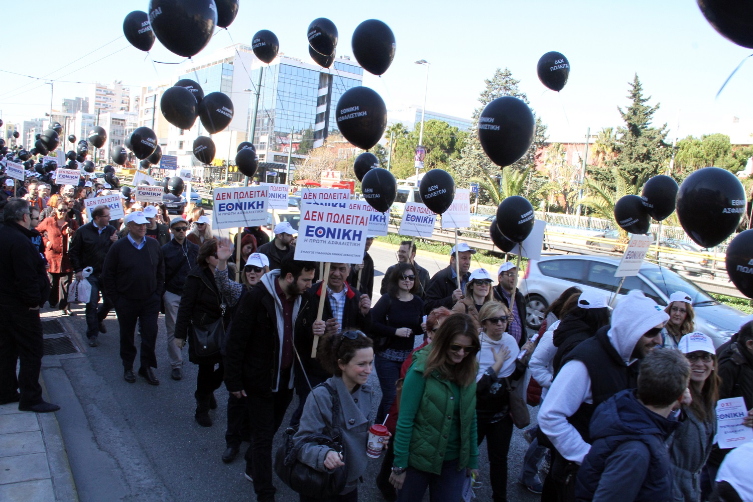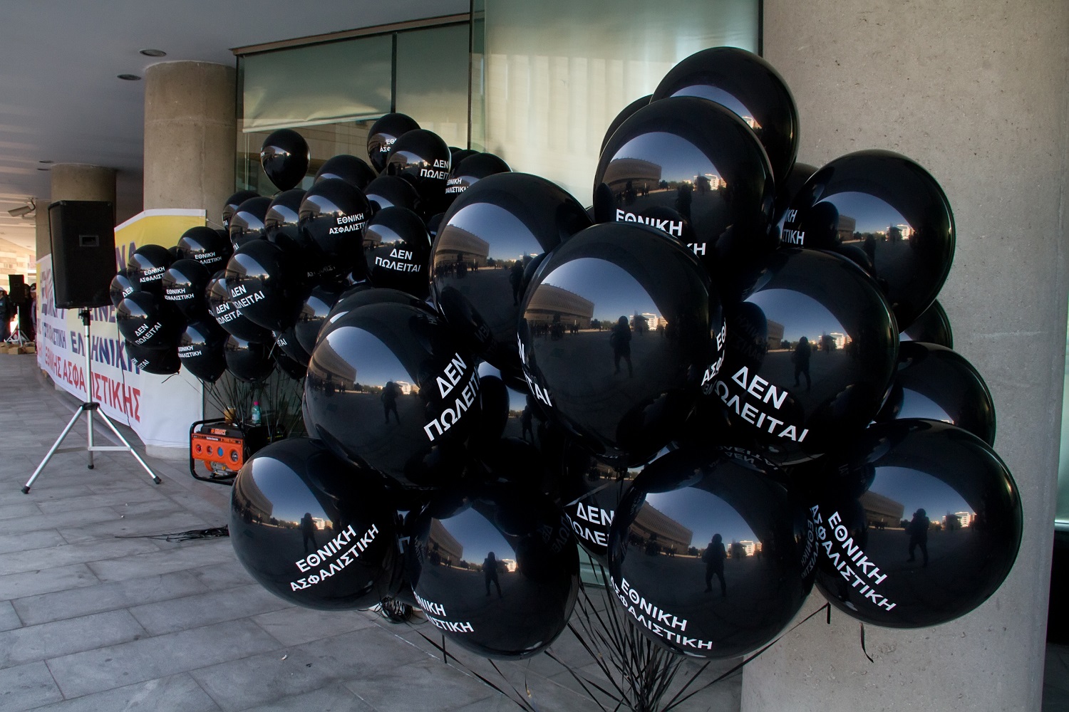 Περίπου 250 με 300 εργαζόμενοι συγκεντρώθηκαν το πρωί στην είσοδο της Εθνικής Ασφαλιστικής, κρατώντας συμβολικά μαύρα μπαλόνια για να στηρίξουν την παραμονή της Εθνικής Ασφαλιστικής στην τράπεζα και να να αποτρέψουν τις διαδικασίες που δρομολογούνται.