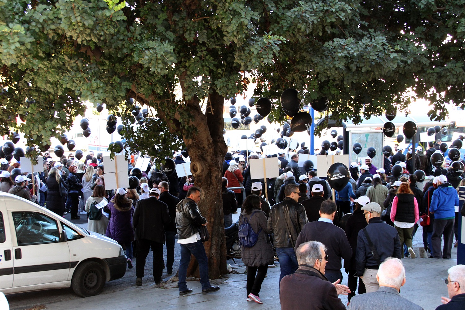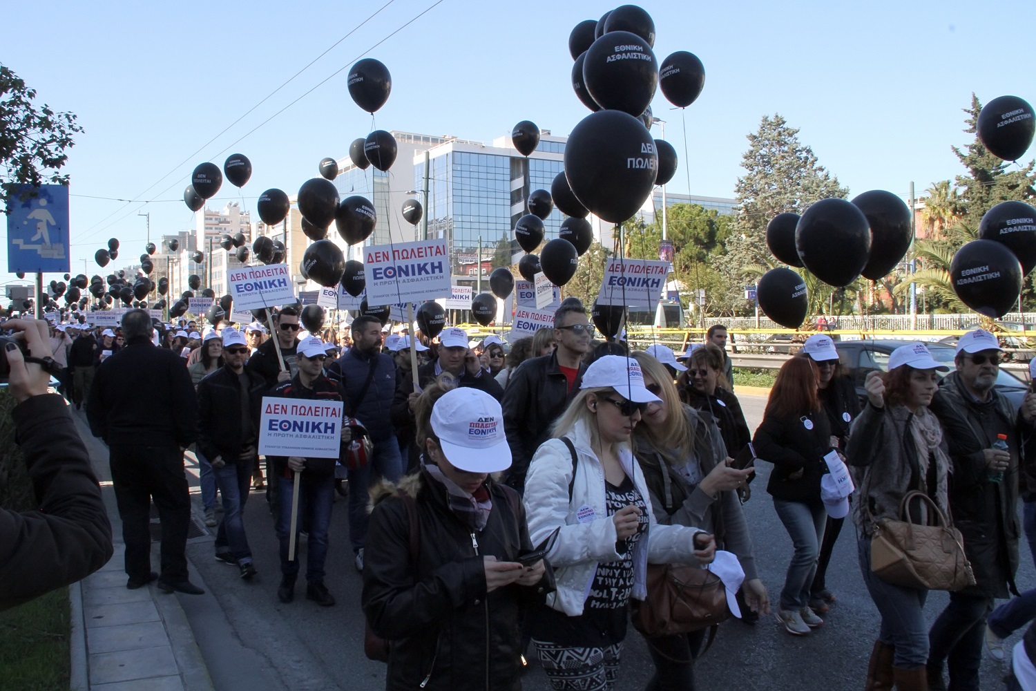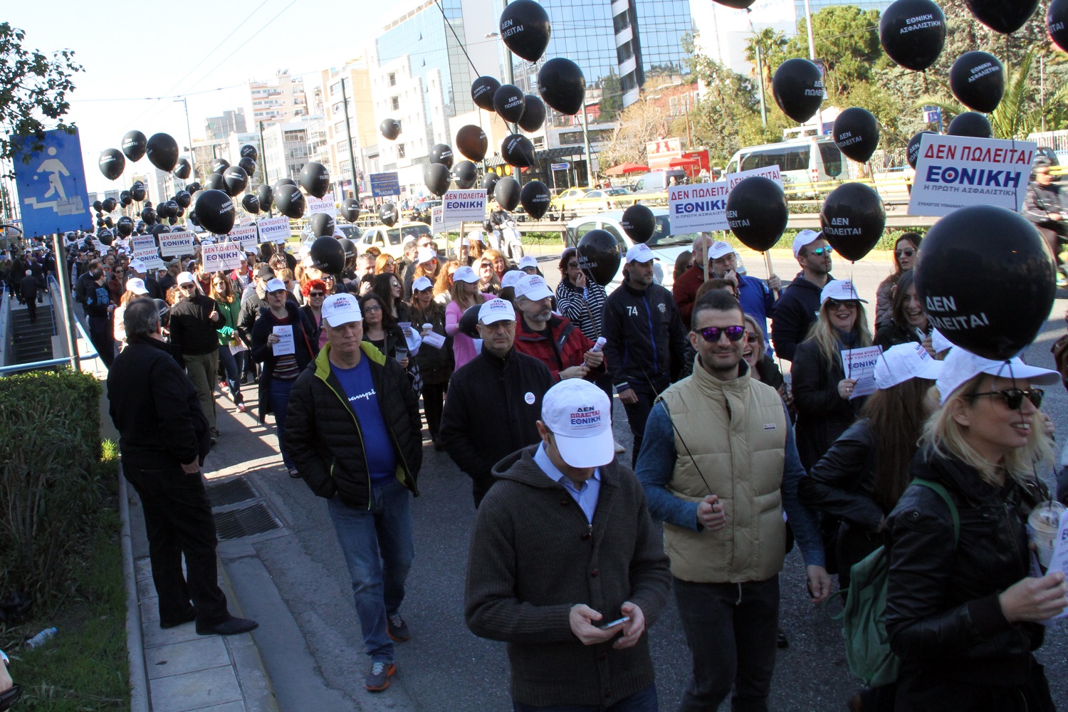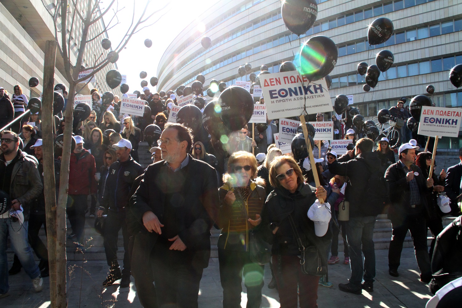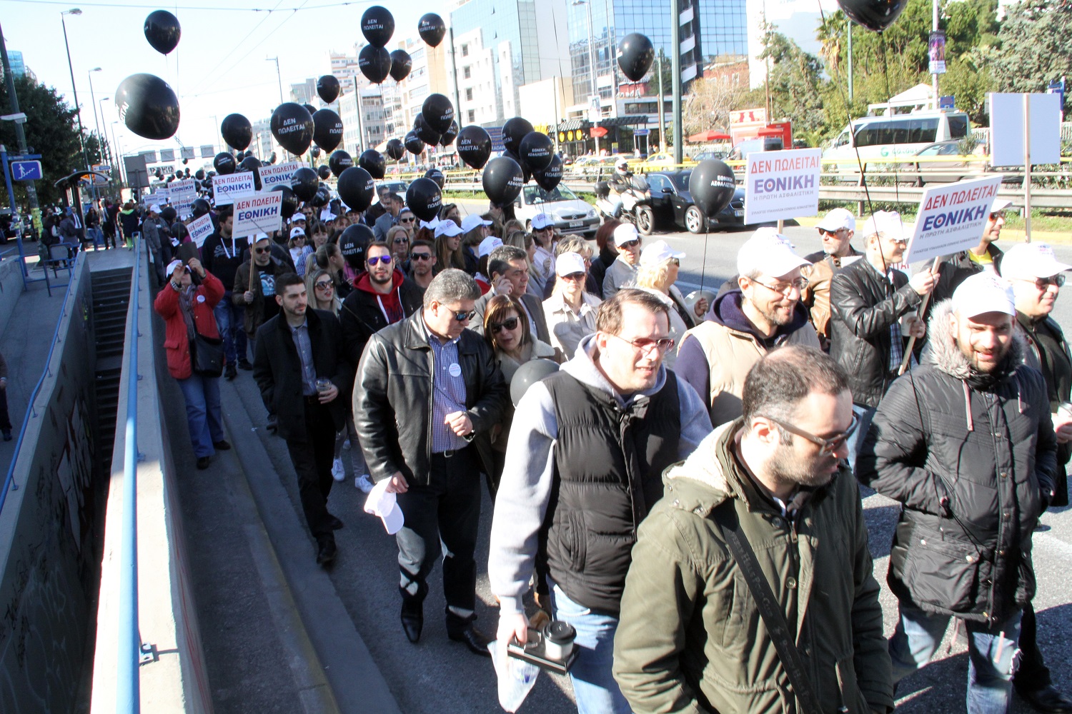 Περίπου 250 με 300 εργαζόμενοι συγκεντρώθηκαν το πρωί στην είσοδο της Εθνικής Ασφαλιστικής, κρατώντας συμβολικά μαύρα μπαλόνια για να στηρίξουν την παραμονή της Εθνικής Ασφαλιστικής στην τράπεζα και να να αποτρέψουν τις διαδικασίες που δρομολογούνται.
