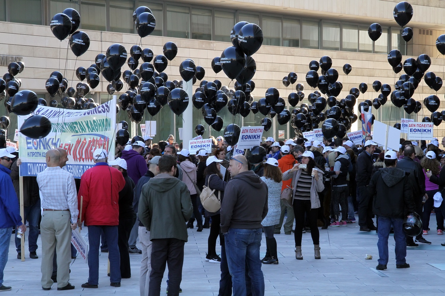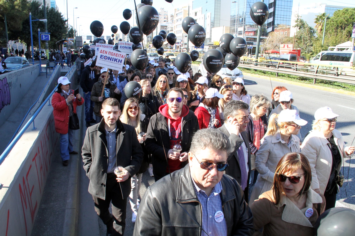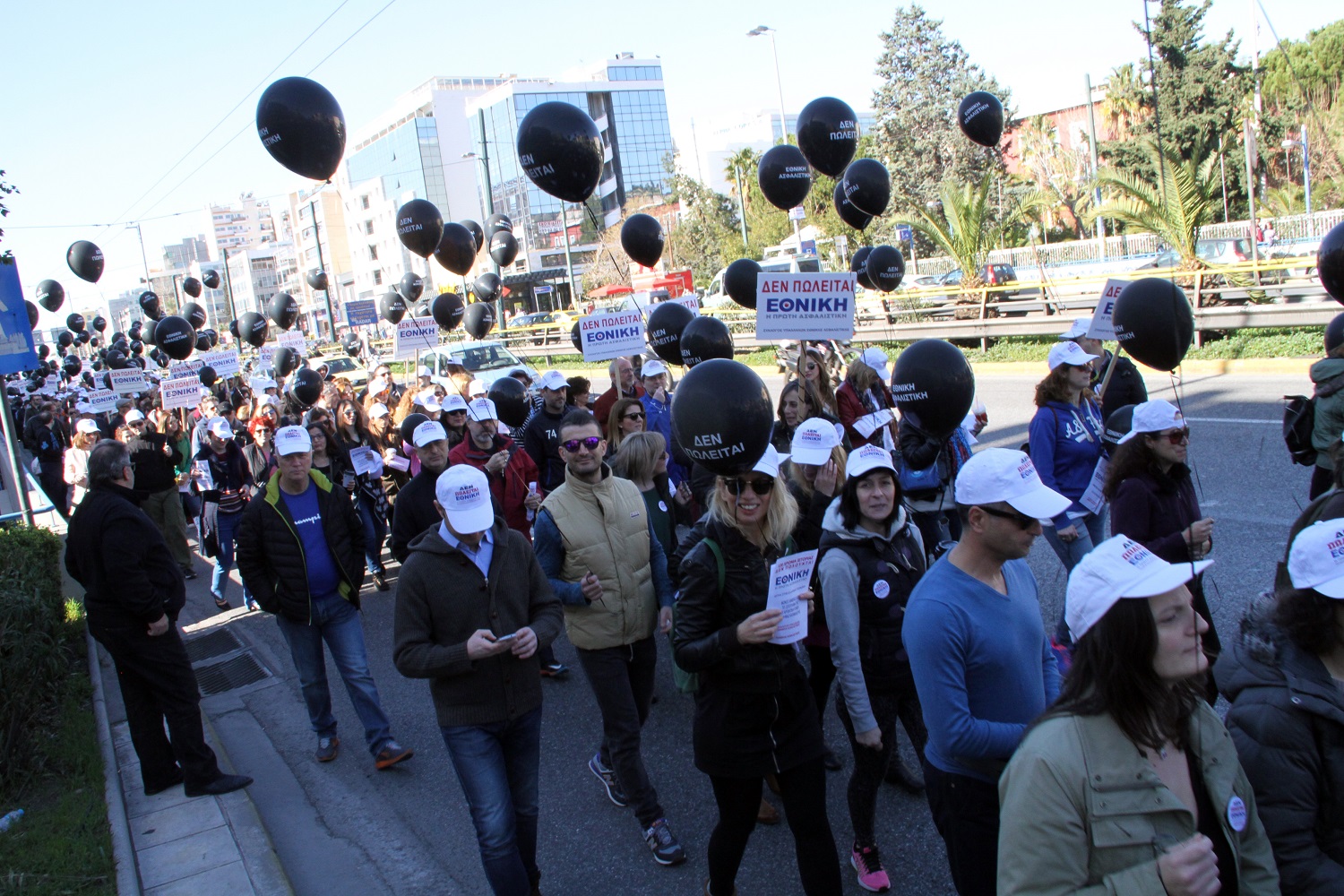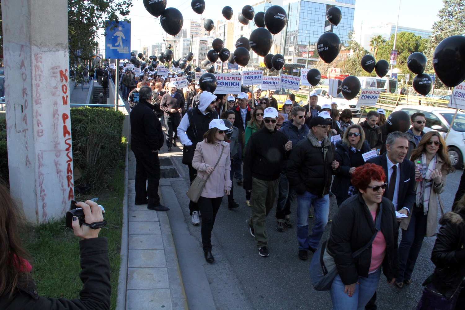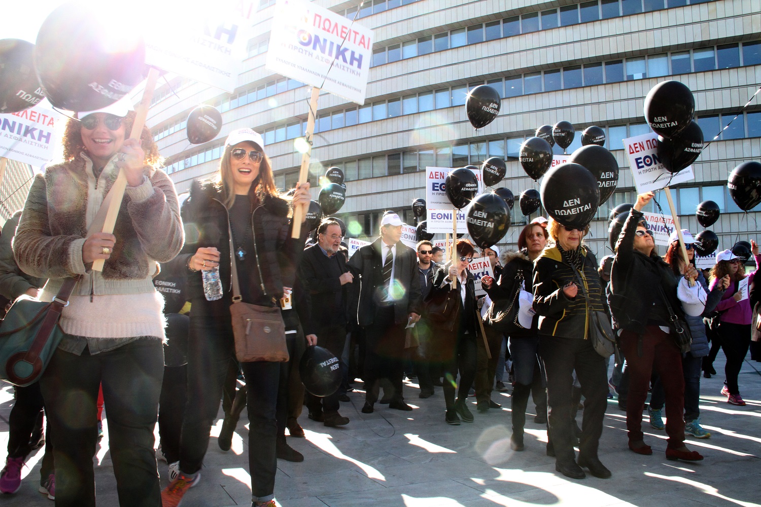 Περίπου 250 με 300 εργαζόμενοι συγκεντρώθηκαν το πρωί στην είσοδο της Εθνικής Ασφαλιστικής, κρατώντας συμβολικά μαύρα μπαλόνια για να στηρίξουν την παραμονή της Εθνικής Ασφαλιστικής στην τράπεζα και να να αποτρέψουν τις διαδικασίες που δρομολογούνται.