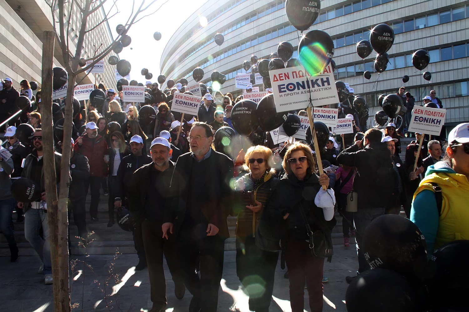 Οι εργαζόμενοι από το κεντρικό κτίριο κατευθύνθηκαν στο κτίριο της Εθνικής στην Αιόλου και εν συνεχεία στο υπουργείο Οικονομικών.