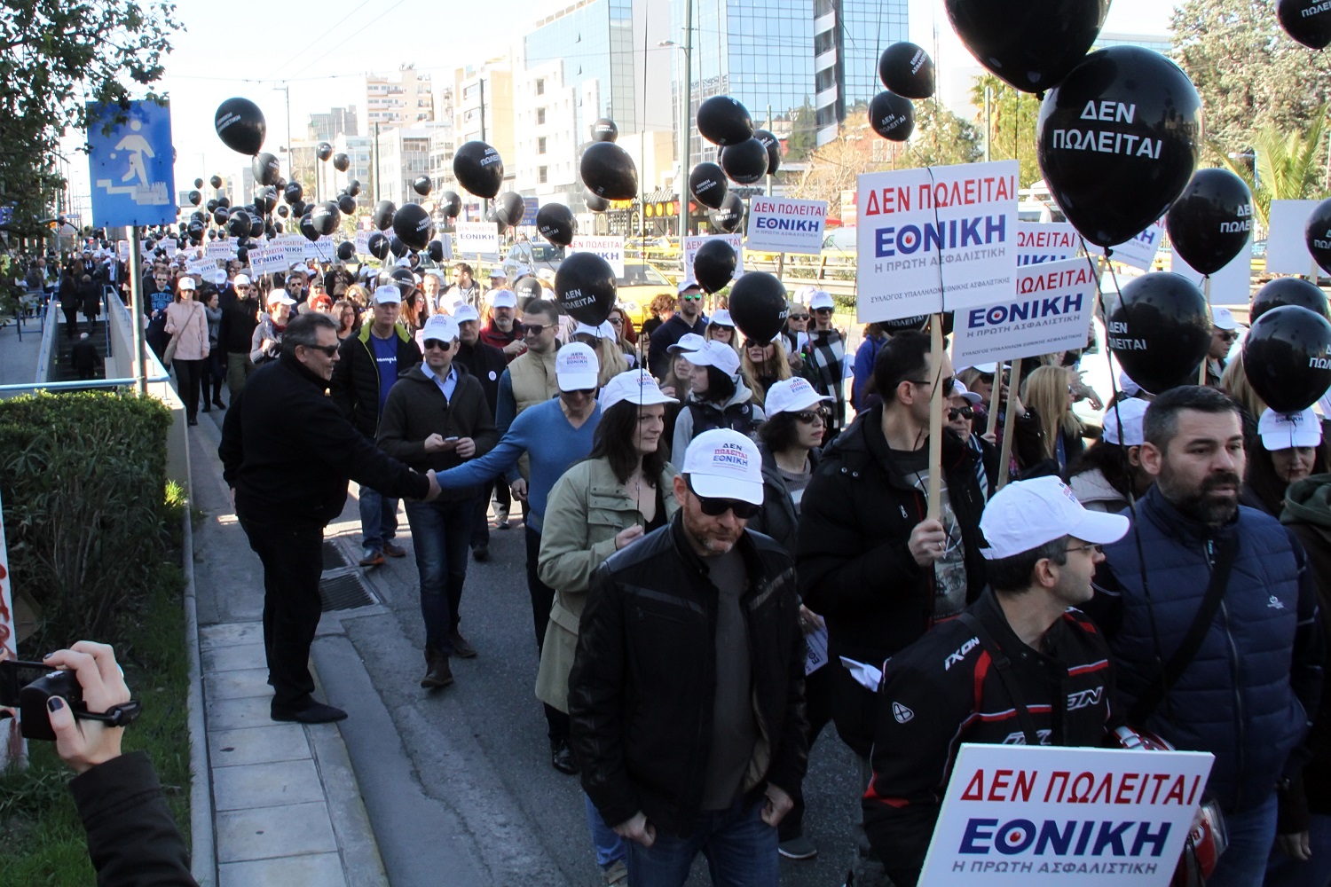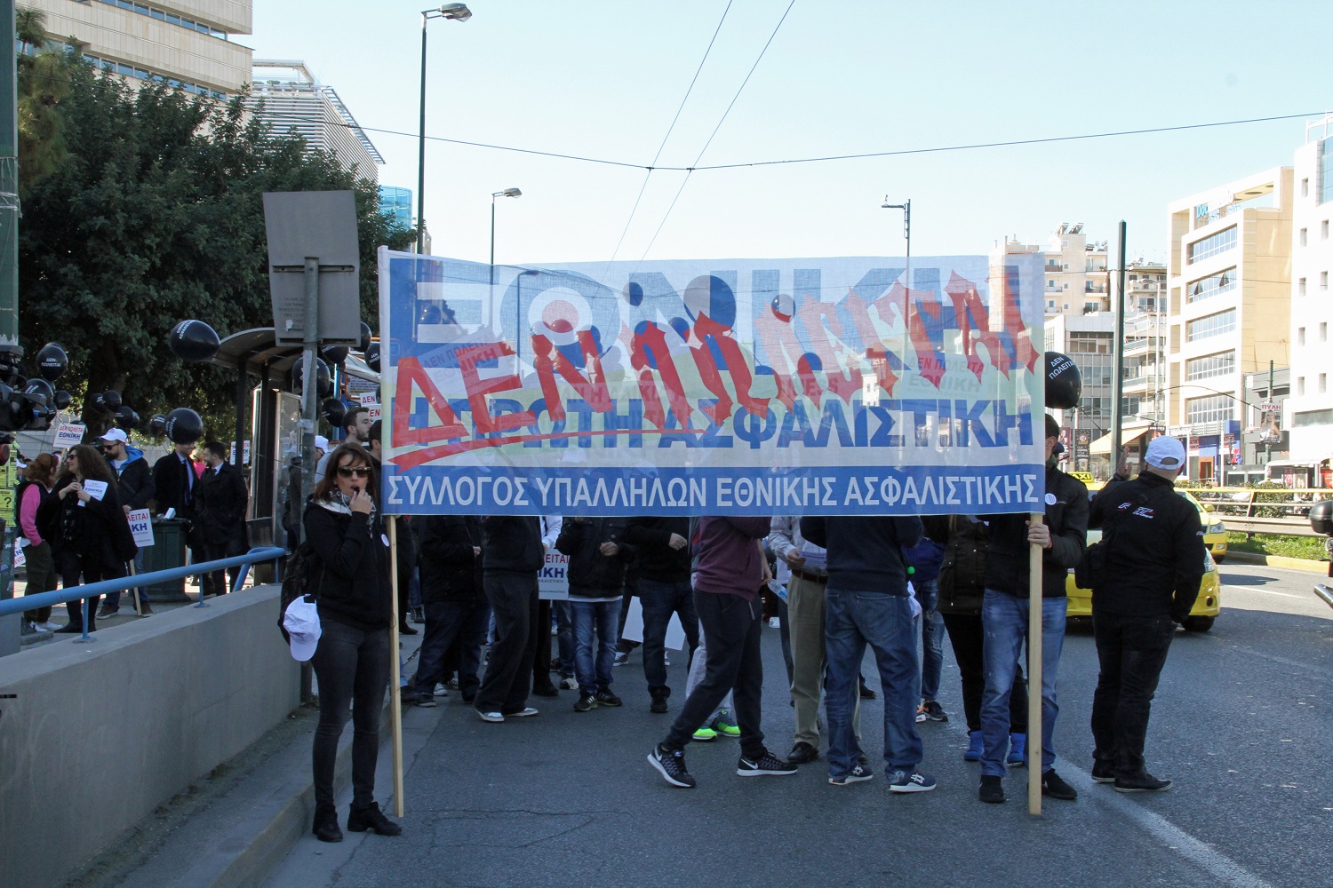 Σε εξέλιξη βρίσκεται αυτήν τη στιγμή η πορεία των εργαζομένων της Εθνικής Ασφαλιστικής που αντιτίθενται στην πρόθεση της ΕΤΕ να προχωρήσει τις διαδικασίες πώλησης της Εταιρείας.