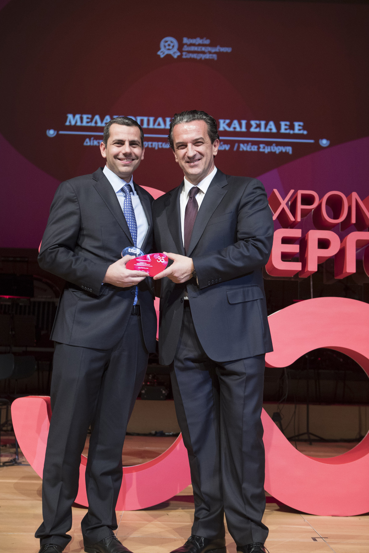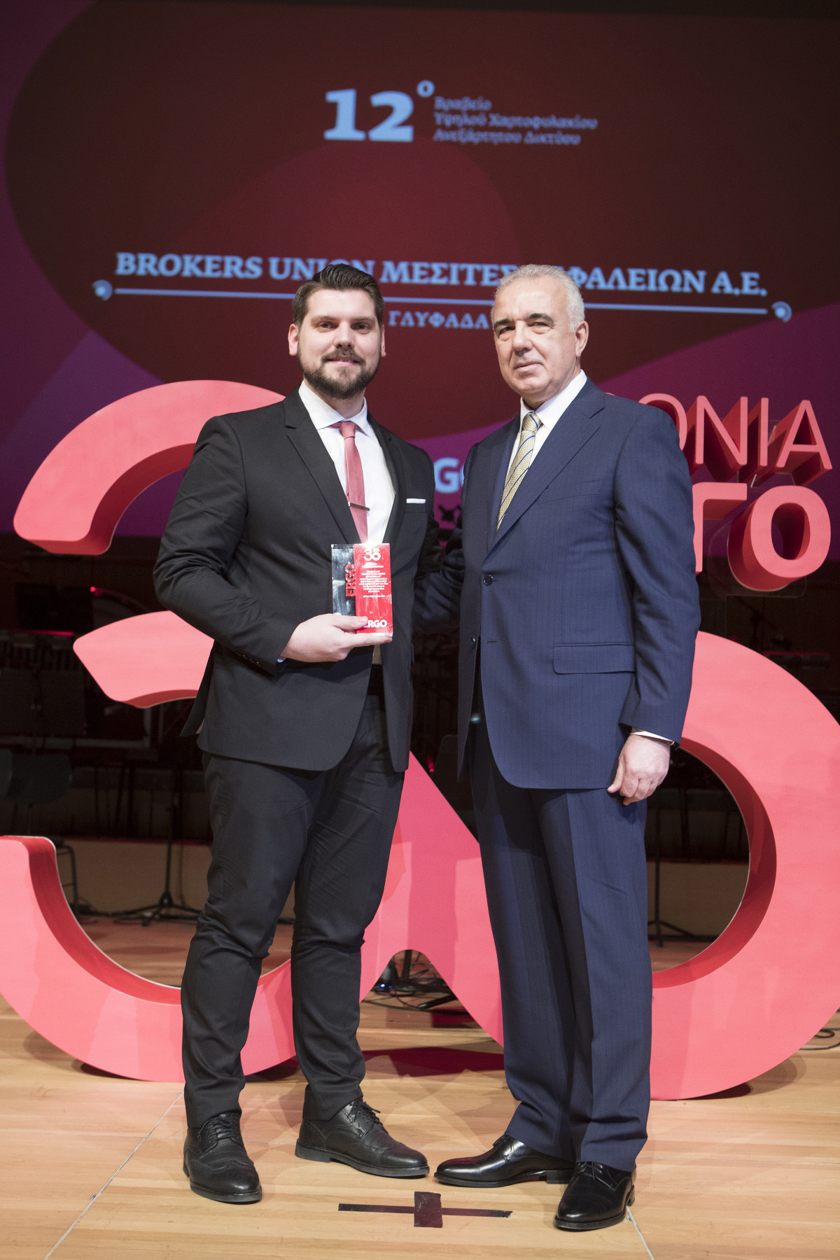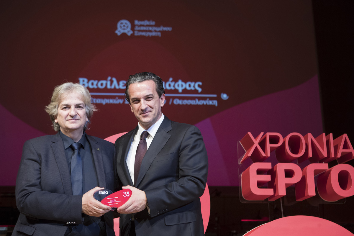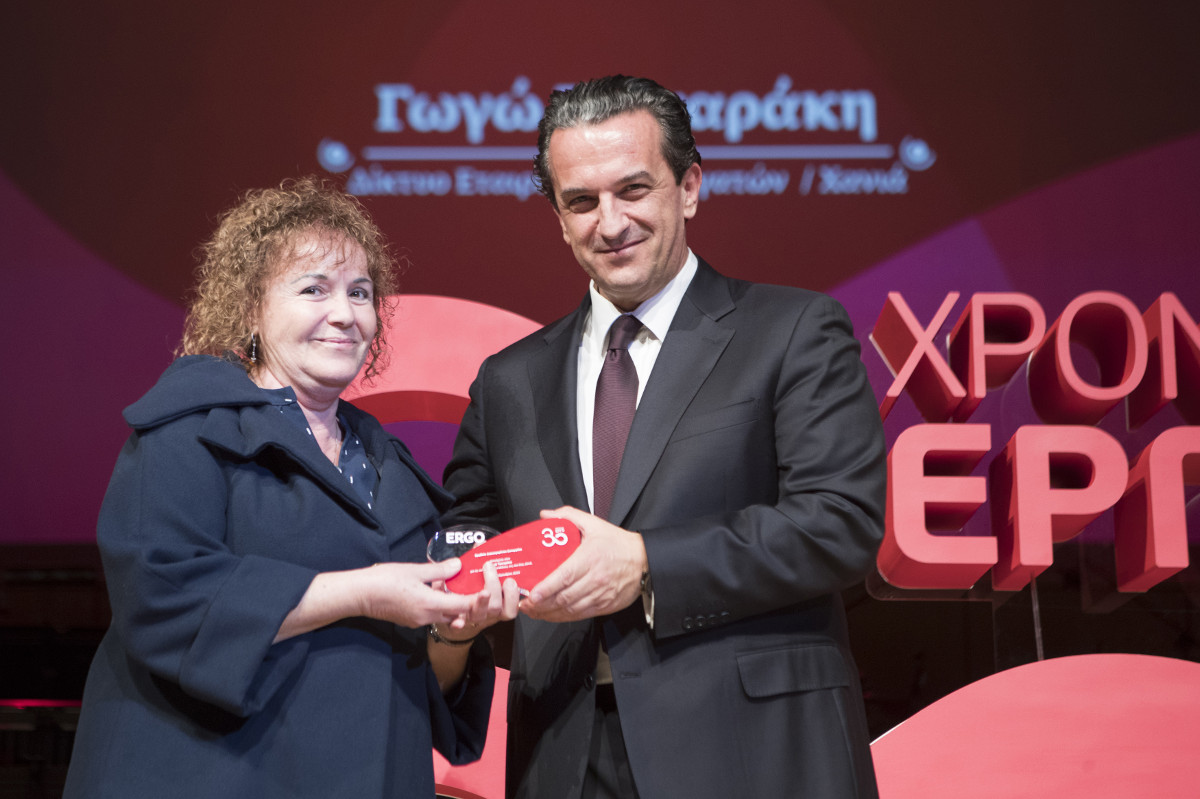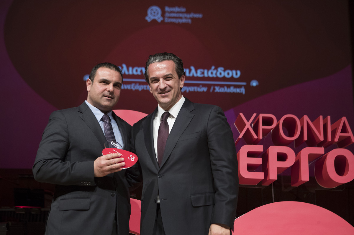 Η εκδήλωση συνεχίστηκε με τη βράβευση των πρωταγωνιστών της σειράς των τηλεοπτικών επεισοδίων με τον τίτλο «Ένα Έργο, μια ιστορία», μιας πρωτοβουλίας της ERGO που κέρδισε τις εντυπώσεις στο χώρο της επικοινωνίας, άγγιξε τις καρδιές των τηλεθεατών και άλλαξε θεαματικά την αντίληψη του κοινού για το πώς μπορεί να σκέφτεται και να λειτουργεί μια ασφαλιστική εταιρεία. Η ERGO διά του κ. Κοκκάλα, ευχαρίστησε και τίμησε τους πρωταγωνιστές της σειράς αυτής για τη συγκίνηση και την έμπνευση που μας χάρισαν μέσα από το έργο τους, ενώ βράβευσε και τον Μάριο Γκολέμη, ασφαλιστικό διαμεσολαβητή και συνεργάτη της ERGO, έναν άνθρωπο με ξεχωριστό έργο, ένα Έργο Ψυχής, αφού αν και με κινητικά προβλήματα, είναι μέλος της ERGO Running Team και μετέχει τα τελευταία χρόνια μαζί με τους συνοδούς του στην κλασική διαδρομή του Μαραθώνιου δρόμου με σύνθημα «Μια Αστραπή η Ζωή, μα προλαβαίνουμε».