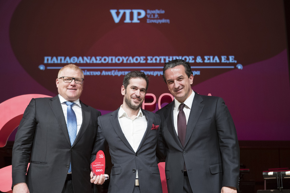 Τέλος, το πρώτο μέρος της εκδήλωσης ολοκληρώθηκε με τη βράβευση των κορυφαίων συνεργατών όλων των δικτύων πωλήσεων της ERGO, που διακρίθηκαν το περασμένο έτος για τις επιδόσεις τους, ενώ απονεμήθηκε και τιμητική διάκριση στην Τράπεζα Πειραιώς, για την ιδιαίτερα επιτυχή συνεργασία της.