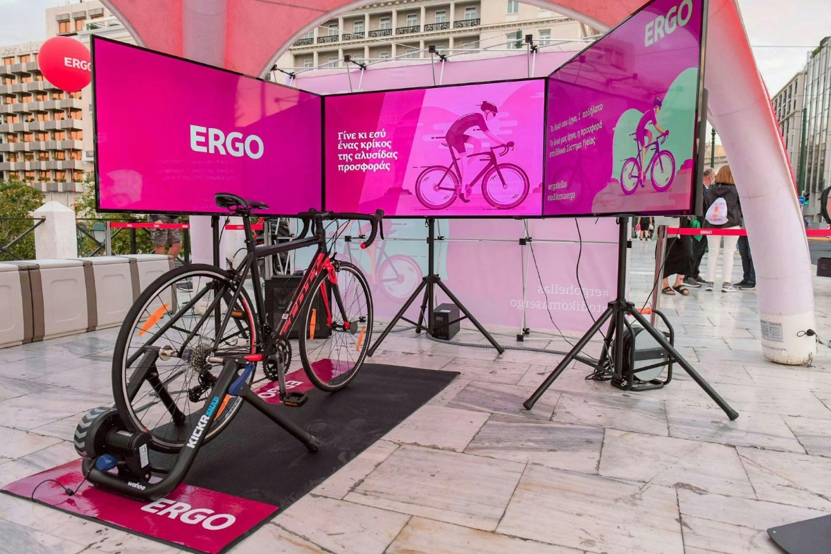 Πόλος έλξης του κόσμου ήταν το περίπτερο της εταιρείας, όπου φιλοξενούσε τη δράση “Γίνε κι εσύ ένας κρίκος της αλυσίδας προσφοράς”. Η ERGO πιστή στη δέσμευσή της να ενεργεί ως κοινωνικά υπεύθυνη εταιρεία οργάνωσε τη δράση αυτή με στόχο να ενισχύσει οικονομικά το Εθνικό Σύστημα Υγείας, προάγοντας παράλληλα την άθληση για την προστασία της υγείας μας. Οι συμμετέχοντες έκαναν ποδήλατο για 1 λεπτό με εικονική περιήγηση στη διαδρομή του αγώνα μέσω οθόνης και η εταιρεία θα μετατρέψει τα συνολικά χιλιόμετρα σε δωρεά στο Ε.Σ.Υ. Η εταιρεία θα συνεχίσει την υλοποίηση της δράσης αυτής και στους υπόλοιπους δρομικούς αγώνες που στηρίζει με τη χορηγία της στον ΣΕΓΑΣ.