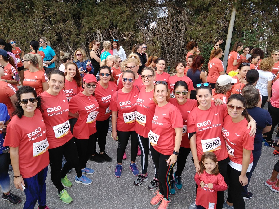 Στηρίζοντας το θεσμό οι ERGO Ladies ένωσαν τις δυνάμεις τους και δημιούργησαν την ERGO Ladies Running Team αποτελούμενη από εργαζόμενες και φίλες της ERGO. Όλες μαζί ένιωσαν τη χαρά της συμμετοχής στον αγώνα, της υπέρβασης των ορίων τους και του τερματισμού, ενώ παράλληλα βοήθησαν με τη συμμετοχή τους να συγκεντρωθούν πόροι που θα κατευθυνθούν σε άλλες γυναίκες που έχουν ανάγκη, μέσω του σωματείου ΔΕΣΜΟΣ.
