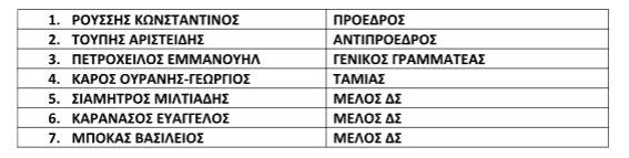 Τα εκλεγέντα Μέλη συγκροτήθηκαν σε Σώμα ΔΣ που θα διοικήσει την Ένωση για την επόμενη διετία, ως ακολούθως :\