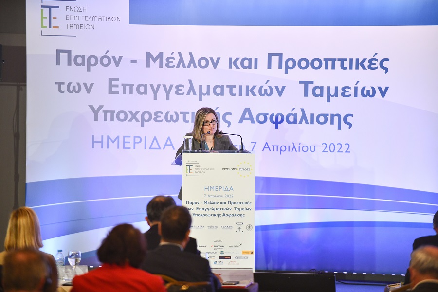 Με μεγάλη επιτυχία και σημαντική φυσική παρουσία ολοκληρώθηκε την Πέμπτη 07.04.2022, στο ξενοδοχείο Divani Caravel, η Ημερίδα με τίτλο «Παρόν – Μέλλον και Προοπτικές των Επαγγελματικών Ταμείων Υποχρεωτικής Ασφάλισης» που διοργάνωσε η Ένωση Ταμείων Επαγγελματικής Ασφάλισης Ελλάδος με αφορμή την ετήσια γενική συνέλευση της Pension Europe στην Αθήνα, μέλος της οποίας είναι η ΕΤΕΑΕ Την ημερίδα τίμησε τόσο η πολιτική ηγεσία του Υπουργείου Εργασίας και Κοινωνικών Υποθέσεων και οι εποπτικές αρχές του κλάδου, όσο και οι κορυφαίοι του κλάδου των εταιρειών asset management και γενικότερα των εταιρειών παροχής συμβουλευτικών υπηρεσιών του χώρου.