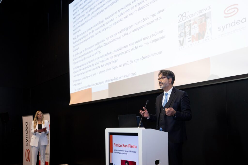 Ο Enrico San Pietro, Insurance General Manager της Unipol Assicurazioni τόνισε στην ομιλία του τη σημασία της φετινής συνάντησης που αποτέλεσε ευκαιρία γιορτής αλλά και κοινής πορείας προς το μέλλον. Σε έναν κόσμο γεμάτο προκλήσεις και αβεβαιότητες, ανέφερε χαρακτηριστικά, ο ρόλος της ασφάλισης γίνεται πιο ουσιαστικός από ποτέ: να προστατεύει, να καινοτομεί και να στηρίζει την κοινωνία. Με αποφασιστικότητα και όραμα, η Syndea είναι έτοιμη να ηγηθεί των αλλαγών και να αξιοποιήσει τις ευκαιρίες που ανοίγονται.
