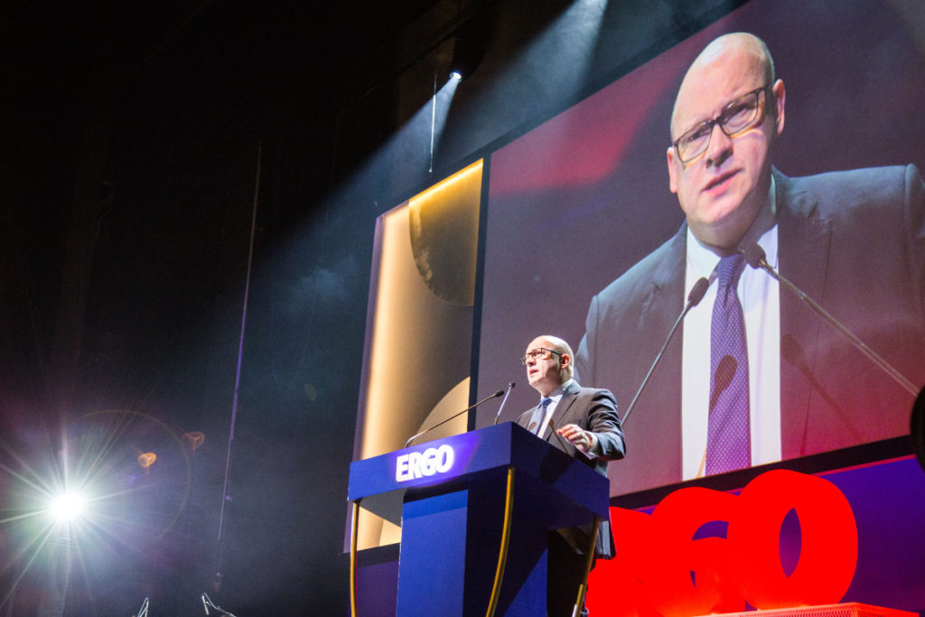 …Θα ήθελα να σας συγχαρώ όλους καθώς και για το 2019 καταφέρατε μια τεράστια επιτυχία. Για την ERGO Ελλάδας όπως και για το group το 2019 ήταν μια ιδιαίτερα πετυχημένη χρονιά. Η δέσμευσή σας και η συνεισφορά τα τελευταία 10 χρόνια στην εταιρεία έχουν αποδώσει εξαιρετικά αποτελέσματα και μια σταθερά ανοδική πορεία η οποία δεν έχει περάσει απαρατήρητη από το group. Μια ανάπτυξη περίπου 10% το χρόνο η οποία συνδυάζεται με κερδοφορία. Και ενώ αυτό μπορεί να θεωρηθεί επιτυχία από μόνο του, το γεγονός ότι τα καταφέρατε μέσα σε ένα δύσκολο οικονομικά και κοινωνικά περιβάλλον το καθιστά ακόμα πιο εντυπωσιακό. Ως προς την προοπτική της διεθνούς στρατηγικής μας, η Ελλάδα παραμένει μια από τις πιο σημαντικές μας αγορές. Σχεδιάζουμε να κρατήσουμε και να μεγαλώσουμε τον ηγετικό μας ρόλο στην Ελληνική Αγορά και σε αυτόν μας το στόχο βασιζόμαστε στα δίκτυά μας όπως και στη διοικητική μας ομάδα η οποία πλέον δεν θα έχει στο δυναμικό της τον κ. Κοκκάλα ο οποίος από τον Φεβρουάριο του 2020 αναλαμβάνει CEO της ERGO Γερμανίας. Μια επιλογή για την οποία είμαστε σίγουροι ότι επιλέξαμε τον σωστό άνθρωπο για αυτή τη θέση και τις προκλήσεις που αντιμετωπίζει στην πατρίδα της εταιρείας μας. Αγαπητέ Θοδωρή, θα ήθελα προσωπικά να σε ευχαριστήσω για τα κατορθώματά σου στην ERGO Hellas και για τη συνεισφορά σου στο group και να εκφράσω τη χαρά μου που δέχθηκες την πρότασή μου να αφήσεις τη θέση που από το 2004 κατέχεις εδώ στην Ελλάδα και να αναλάβεις μια από τις πιο νευραλγικές και σημαντικές αγορές στις οποίες δραστηριοποιείται η εταιρεία, αυτή της Γερμανίας. Όπως όλοι γνωρίζετε, τώρα πρέπει να βρούμε τον άνθρωπο που θα αναλάβει τη θέση που αφήνει πίσω του ο κ. Κοκκάλας, κατι που δεν είναι εύκολο αλλά να είστε σίγουροι ότι ο κ. Κοκκάλας και ο Dr Willmes δε θα αργήσουν να βρουν έναν άξιο αντικαταστάτη.