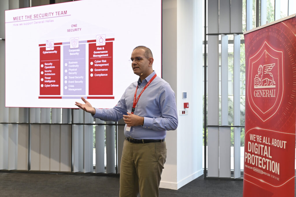 Η Generali, στο πλαίσιο της διεθνούς πρωτοβουλίας για την ενίσχυση της ασφάλειας στον κυβερνοχώρο, ολοκλήρωσε με επιτυχία την Εβδομάδα Cyber Security Awareness, η οποία έλαβε χώρα από τις 29 Οκτωβρίου έως την 1η Νοεμβρίου στον σύγχρονο χώρο των κεντρικών γραφείων της Εταιρείας.