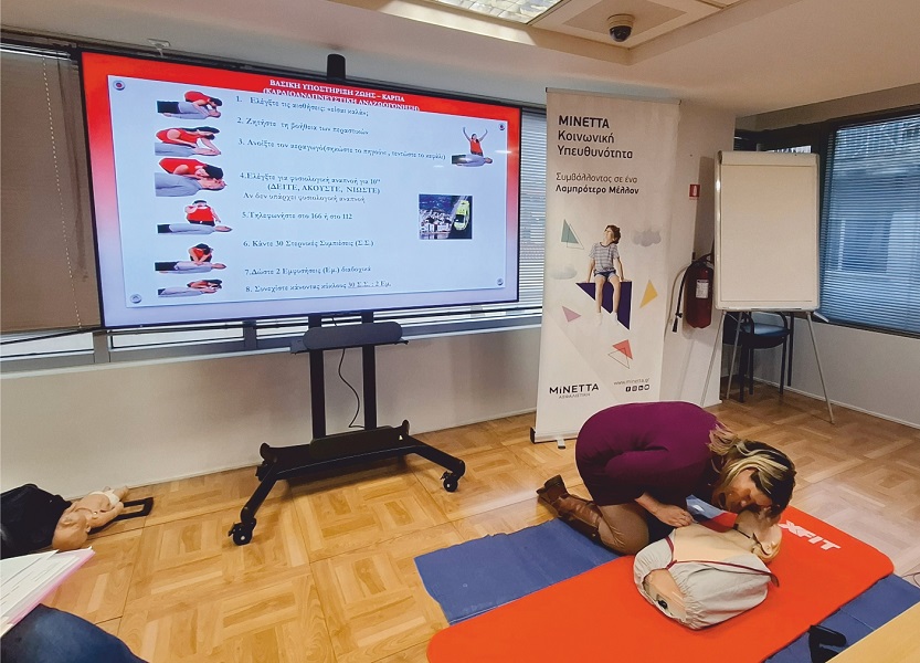 - Εκπαιδεύσεις Α’ Βοηθειών στις4 και 10 Δεκεμβρίου σε συνεργασία με τον Ελληνικό Ερυθρό Σταυρό. Οι συμμετέχοντες, εργαζόμενοι στην Εταιρία και συνεργάτες, παρακολούθησαν 6ωρο Εκπαιδευτικό Πρόγραμμα όπου μεταξύ άλλων εκπαιδεύτηκαν στη Βασική Υποστήριξη Ζωής, Καρδιοπνευμονική Αναζωογόνηση (ΚΑΡΠΑ) με χρήση Αυτόματου Εξωτερικού Απινιδωτή.