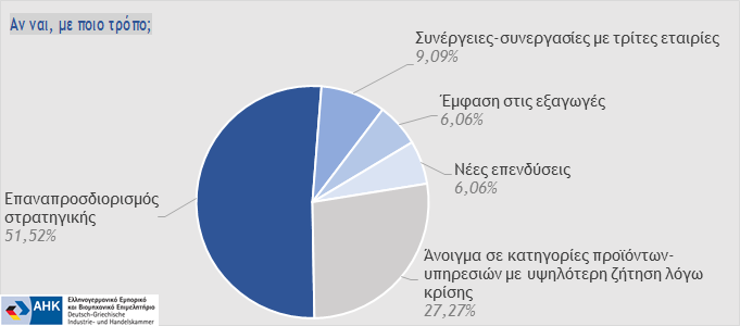 Ο Γενικός Διευθυντής του Ελληνογερμανικού Εμπορικού και Βιομηχανικού Επιμελητηρίου, Δρ. Αθανάσιος Κελέμης, σχολιάζοντας τα αποτελέσματα της έρευνας, τόνισε ότι «η μετατροπή της οποιασδήποτε κρίσης σε ευκαιρία ανάπτυξης πάντα θα αποτελεί υγιή αντίδραση για κάθε επιχείρηση, η οποία επιμένει να στρέφει την προσοχή της στο μέλλον, έχοντας νωρίτερα μεριμνήσει για τη διαμόρφωση ισχυρών δομών λειτουργίας και ευέλικτων διαδικασιών προσαρμογής σε κάθε έκτακτη συνθήκη».