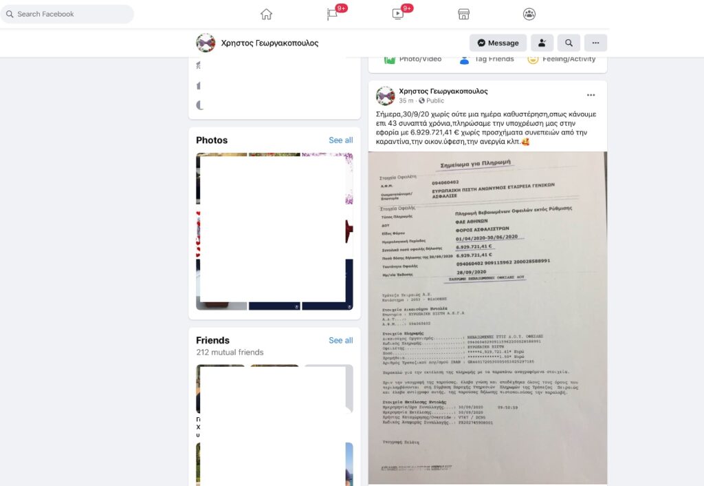 Αυτό που μας προκαλεί όμως (θετική) εντύπωση και μας κινητοποιεί στο να δώσουμε δημοσιότητα στο θέμα είναι ότι ο Διευθύνων Σύμβουλος της Εταιρείας κ. Γεωργακόπουλος δεν διστάζει να μοιραστεί δημόσια με τους “φίλους” του στο Facebook το σημείωμα πληρωμής στην εφορία. Να μοιραστεί δημόσια το πόσο περήφανος νιώθει που η Εταιρεία του, για 43 συναπτά χρόνια πληρώνει χωρίς καθυστερήσεις και ρυθμίσεις τις υποχρεώσεις της συμβάλλοντας και από αυτή την πτυχή στην οικονομία της χώρας.