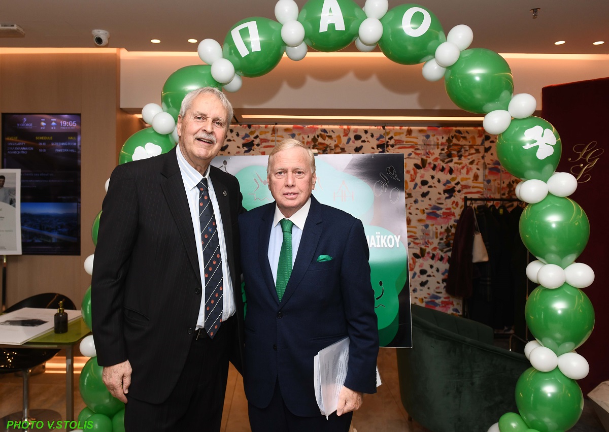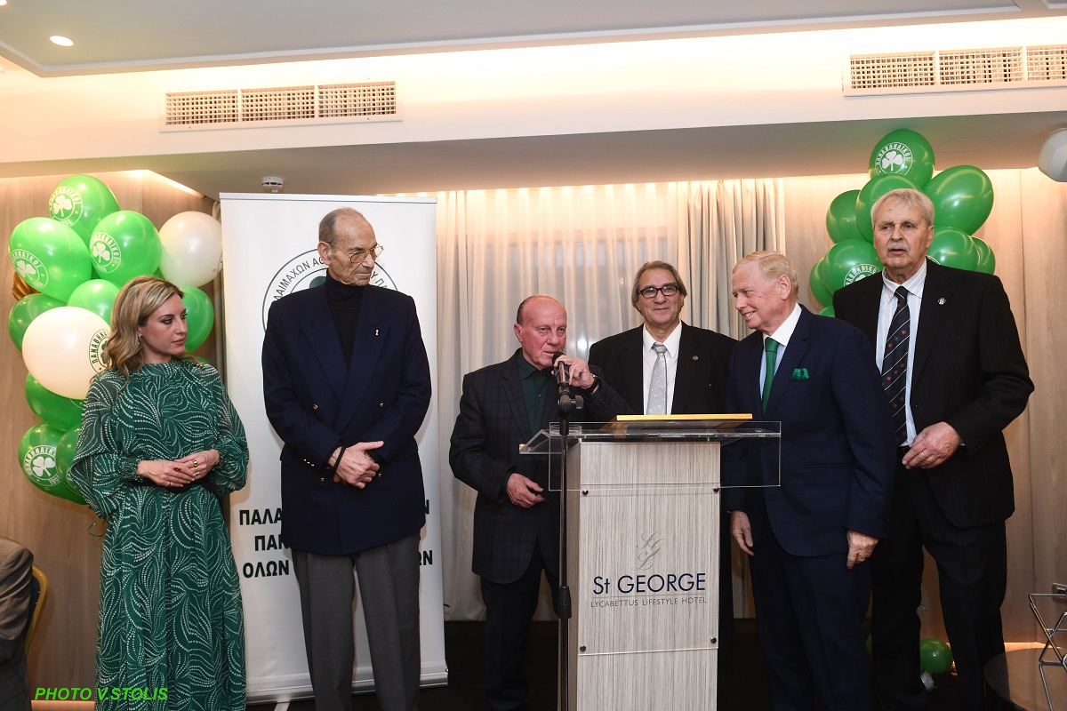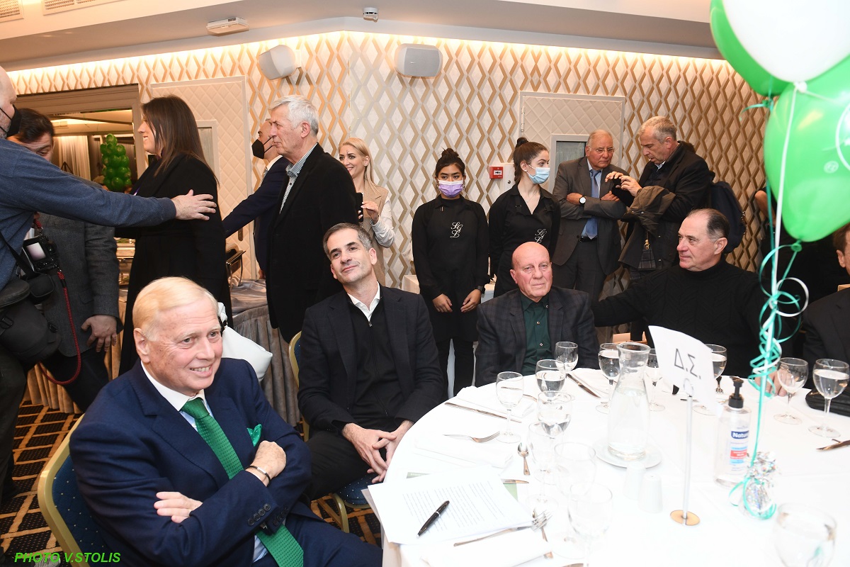 Ο επίτιμος καλεσμένος και Δήμαρχος Αθηναίων κ. Κώστας Μπακογιάννης απένειμε την τιμητική διάκριση του Επιτίμου Προέδρου των Παλαίμαχων Αθλητών Πρωταθλητών όλων των αθλημάτων του Παναθηναϊκού στον «Στρατηγό» του Παναθηναϊκού αλλά και του Ελληνικού Ποδοσφαίρου κ. Μίμη Δομάζου.
