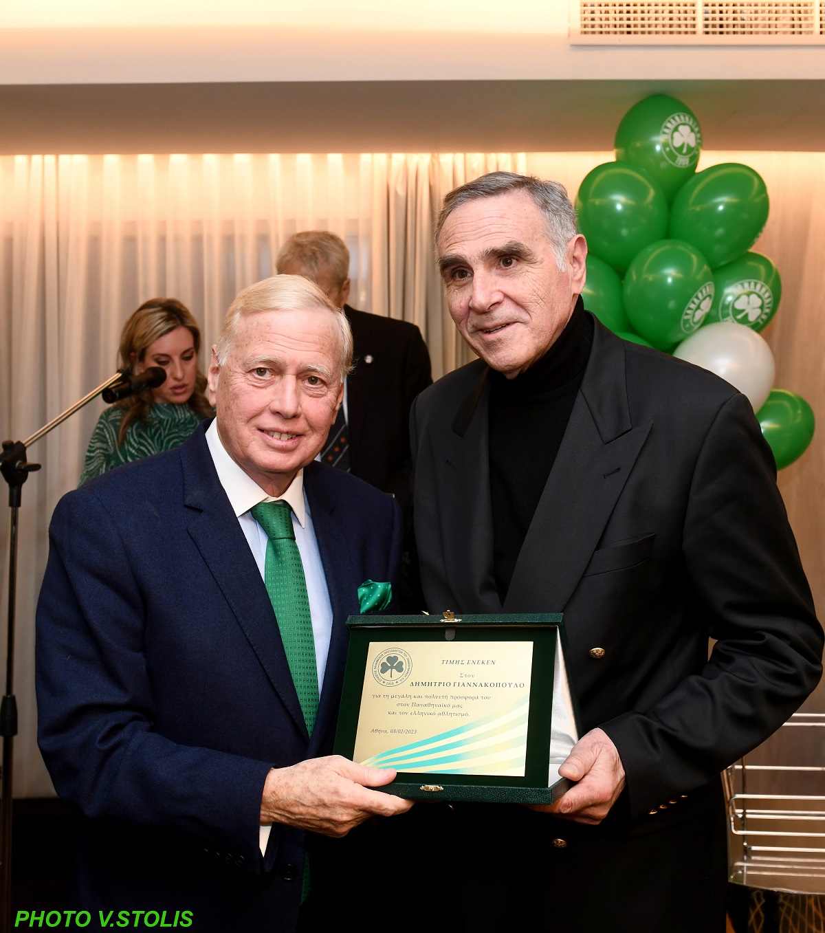 Ο κ. Νίκος Μακρόπουλος για την προσφορά του κ. Δημήτρη Γιαννακόπουλου στον Ερασιτέχνη Παναθηναϊκό και τον Ελληνικό αθλητισμό απένειμε τιμητική διάκριση την οποία παρέλαβε εκ μέρους του ο π. Διεθνής παίκτης του βόλεϋ κ. Μιχάλης Γεωργαντής.