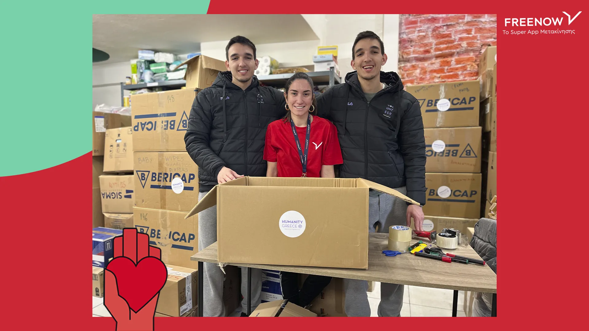Ταυτόχρονα, η Ελληνική ομάδα της FREE NOW έθεσε το θέμα σε τοπικό επίπεδο και οι άνθρωποί της συνέβαλαν συλλέγοντας 8 κούτες με ρούχα και 4 σακούλες με αγαθά πρώτης ανάγκης για να τα παραδώσει στον ανθρωπιστικό οργανισμό Humanity Greece. O οργανισμός ανταποκρίνεται σε κάθε έκτακτη ανάγκη των πολιτών για στήριξη και βοήθεια, καλύπτει σοβαρές ελλείψεις αναφορικά με την διαχείριση κρίσεων και την υποστήριξη κοινωνικά ευάλωτων ομάδων.