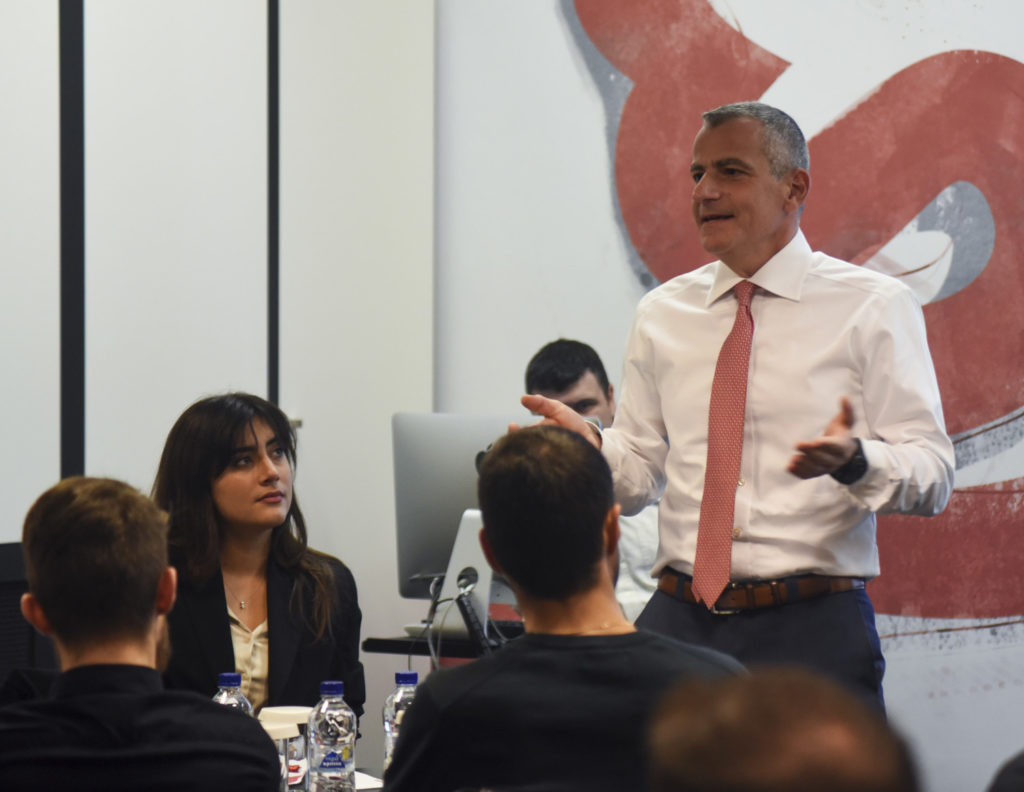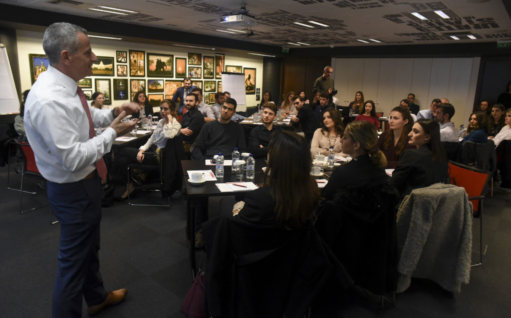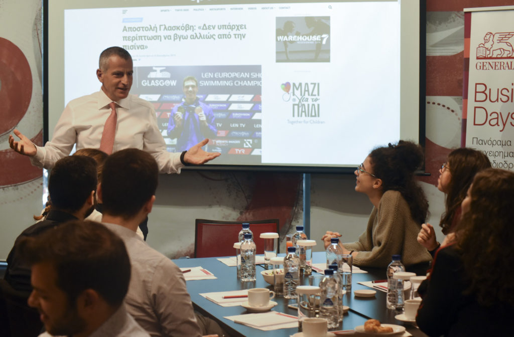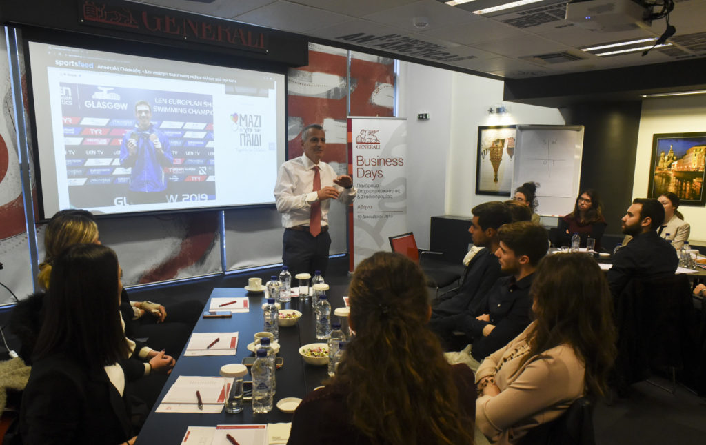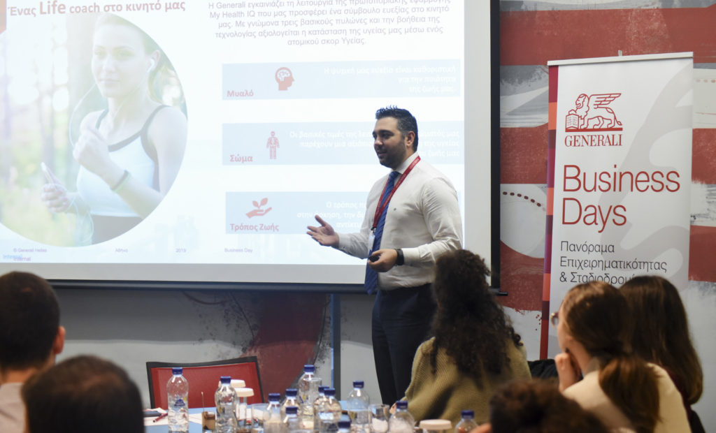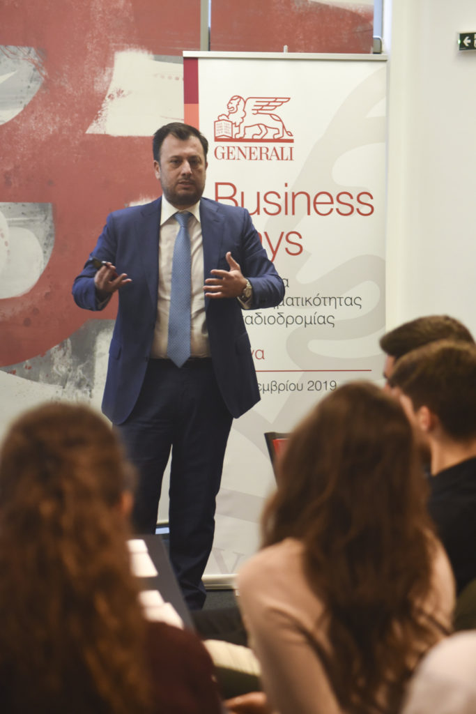 O Διευθύνων Σύμβουλος της Generali κ. Παναγιώτης Δημητρίου συνομίλησε με τους νέους, επισημαίνοντας ότι ο κλάδος της ασφάλισης αποτελεί την ιδανική επιλογή για όσους θα ήθελαν να γνωρίσουν από κοντά και να δοκιμάσουν τις δυνατότητές τους στην επιχειρηματική καινοτομία: