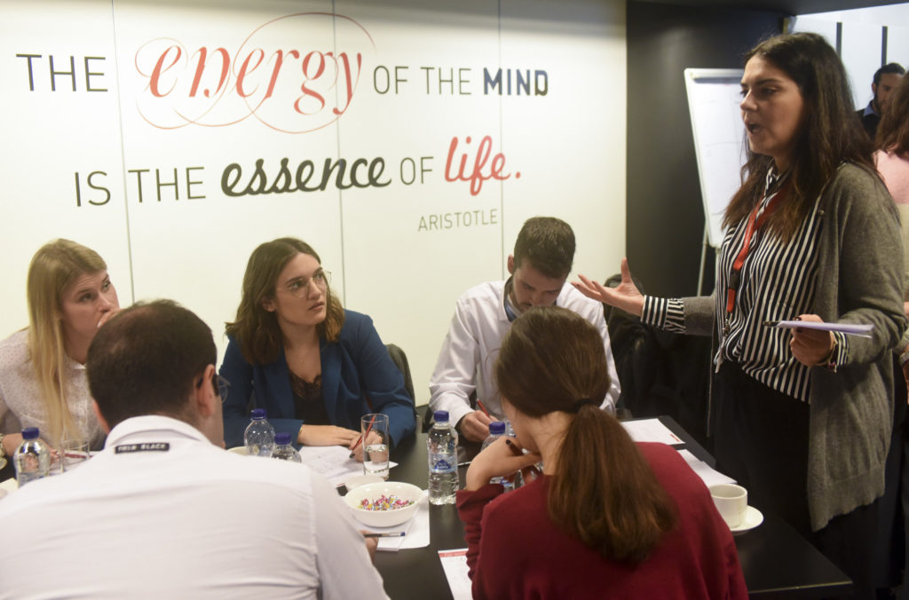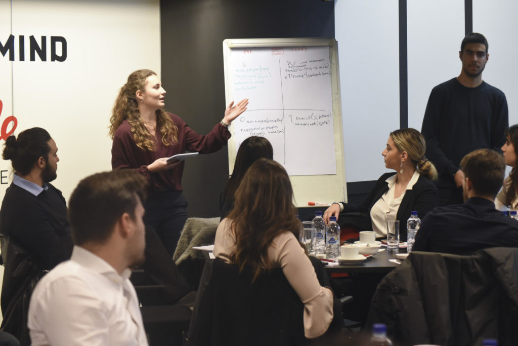 Στη συνέχεια, προσομοιάζοντας μία πραγματική ομάδα εργασίας της Generali, κάλεσε τους συμμετέχοντες να αναλύσουν και να επιλέξουν μεταξύ τριών πιθανών μοντέλων, την ιδανική λύση. Με τη χρήση Live poll, οι ομάδες ψήφισαν τα χαρακτηριστικά που θα πρέπει να έχει η νέα υπηρεσία της Generali, συνδυάζοντας την προστασία της υγείας των ασφαλισμένων με την αξιοποίηση της τηλεματικής. Οι ομάδες παρουσίασαν τις προτάσεις τους και κατέθεσαν το δικό τους marketing plan, διεκδικώντας ένα βραβείο έκπληξη: να περάσουν ένα διήμερο με την ομάδα robotics της Generali!