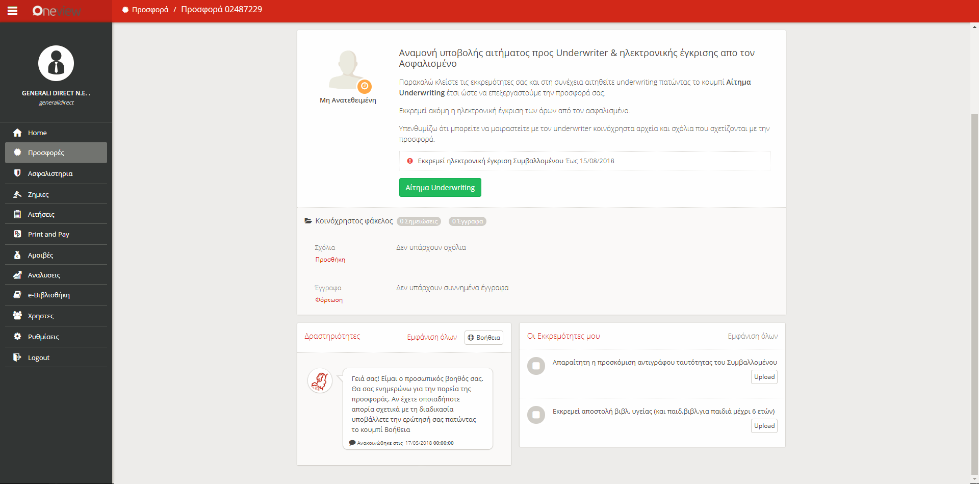 Εκεί θα μπορεί κι ο ίδιος να διαχειρίζεται τα αιτήματα του, μέσω ενός ψηφιακού οδηγού πλοήγησης, ο οποίος θα τον καθοδηγεί σε κάθε του βήμα. Με αυτήν την απόλυτα ψηφιακή και διαφανή διαδικασία, η εξυπηρέτηση του ασφαλισμένου γίνεται πιο απλή και γρήγορη από ποτέ. Μία ακόμη πρωτοπορία του νέου αυτού εργαλείου είναι ότι έχει ενσωματωμένους τους κανόνες underwriting. Με αυτόν τον τρόπο, παρέχει τη δυνατότητα για on-line έκδοση αναλυτικής προσφοράς ασφάλισης και αίτησης ασφάλισης για όποιο πρόγραμμα επιθυμεί ο χρήστης, μέσα σε ελάχιστο χρόνο.