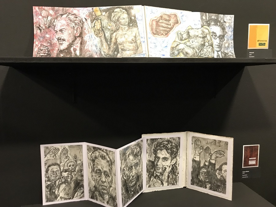 Η έκθεση, με την επιμέλεια της Λουίζας Καραπιδάκη και του ίδιου, περιλαμβάνει αυτά τα έργα Artist’s Books από το ξεκίνημα έως και σήμερα. Μικρά και αποσπασματικά, σπονδυλωτά εικαστικά αφηγήματα για πρόσωπα, καταστάσεις και γεγονότα, σε πτυσσόμενα πολύπτυχα και σε κουτιά και με έκδηλη την πληθωρική ποιητική διάθεση στη σύνθεση των ευρηματικών εκφραστικών τεχνικών και τρόπων, με διαστάσεις κατασκευής που υπερβαίνουν τη συμβατική μορφή του βιβλίου.