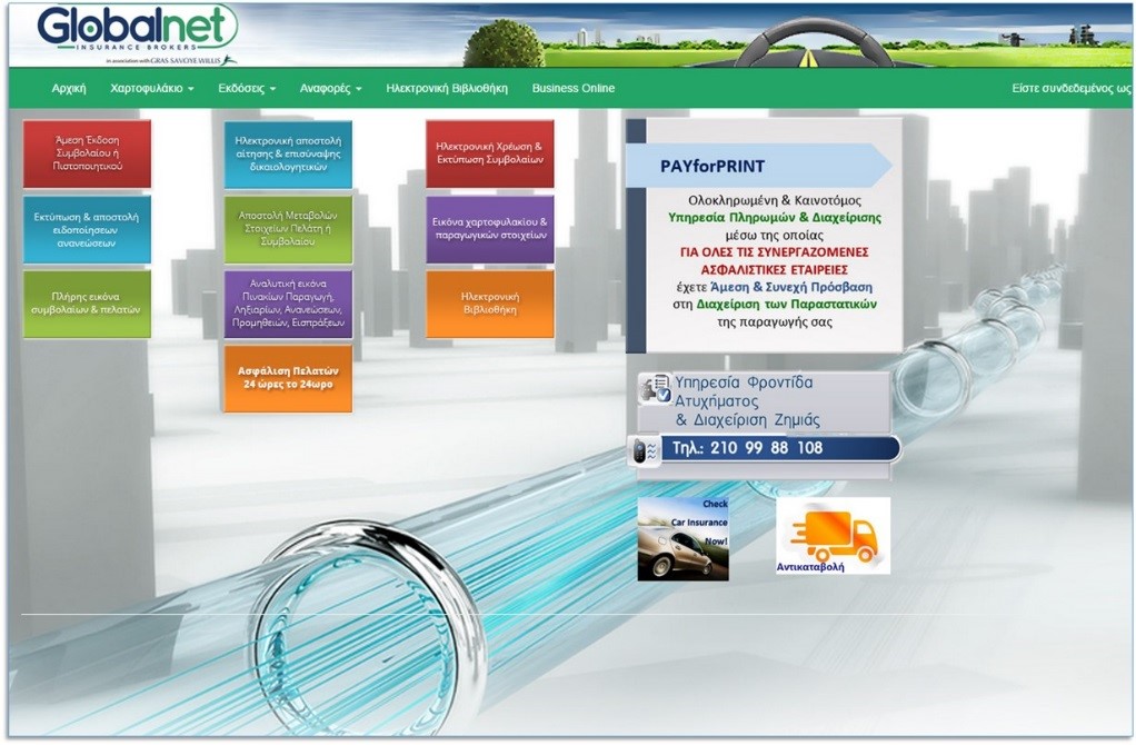 Στη διάθεση των συνεργατών της στην πλατφόρμα της portal.globalnet.gr βρίσκεται ήδη η νέα αναβαθμισμένη έκδοση του «Ηλεκτρονικού Γραφείου» της Globalnet μέσω του οποίου επιτυγχάνεται απόλυτα ο στόχος απελευθέρωσης ενέργειας και παραγωγικού έργου για τον συνεργαζόμενο επαγγελματία ασφαλιστή.