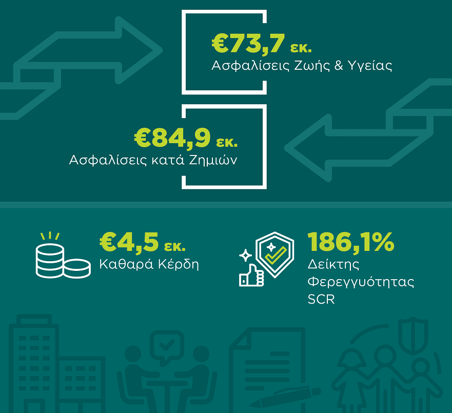 Τέλος, η εταιρεία δίνοντας ιδιαίτερη σημασία στην ασφάλεια των χρηματοπιστωτικών της δεικτών ενίσχυσε την κάλυψη της κεφαλαιακής απαίτησης φερεγγυότητας (SCR), η οποία προ διανομής μερίσματος διαμορφώθηκε σε 170,6% για το 2021 περιλαμβάνοντας πρόβλεψη για διανομή μερίσματος ύψους 10,1 εκ. ευρώ.
