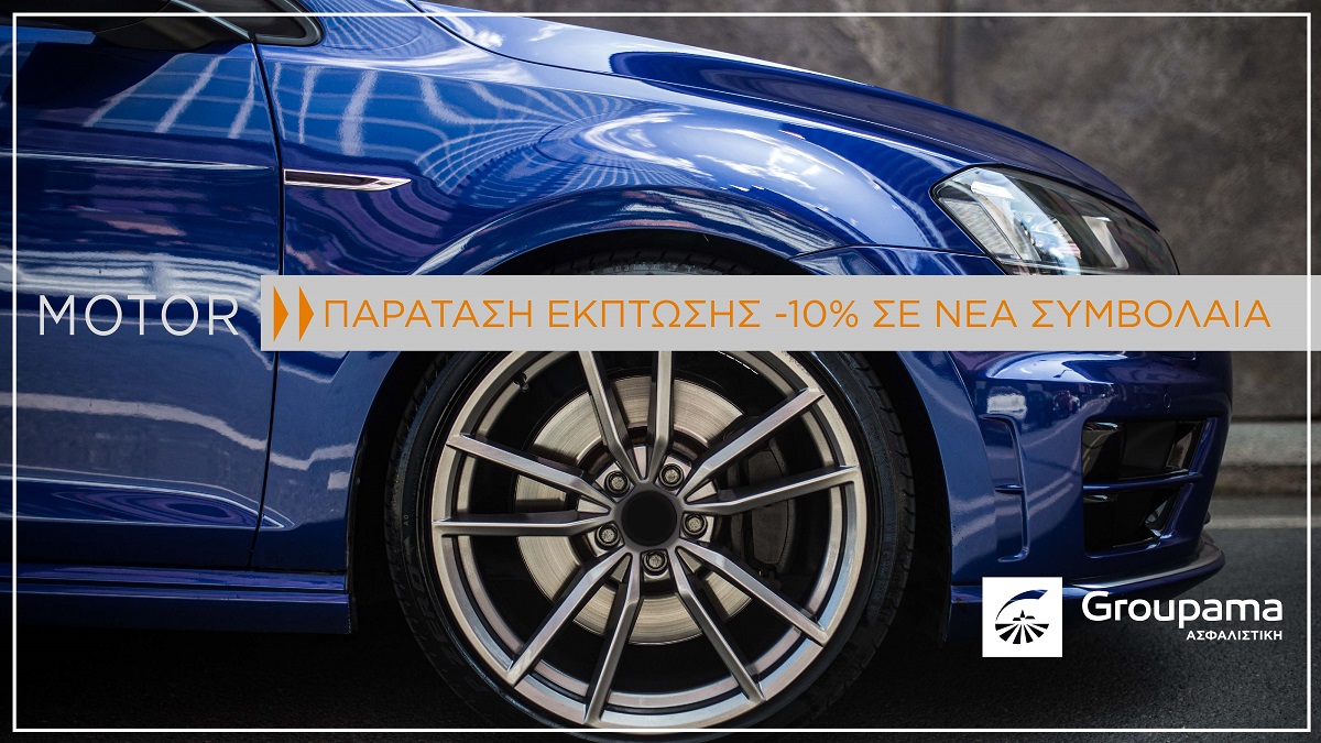 Η Groupama Ασφαλιστική, σε συνέχεια της πρωτοβουλίας της για μειωμένα τιμολόγια στον κλάδο των αυτοκινήτων, ανακοινώνει ότι η ισχύουσα έκπτωση 10% για νέα ασφαλιστήρια συμβόλαια που θα συναφθούν παρατείνεται έως την 30η Ιουνίου.