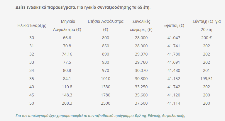 Παρατηρήστε από το παραπάνω πίνακα ότι για τη κατοχύρωση του ίδιου ποσού σύνταξης και εφάπαξ το κόστος της αποταμίευσης αυξάνεται για κάθε έτος αναβολής και κατεπέκταση για μεγαλύτερες ηλικίες έναρξης.