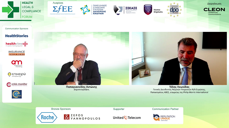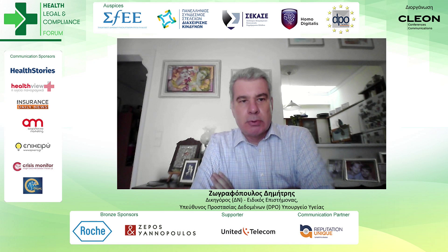 Σε μια καίρια στιγμή για την πορεία της πανδημίας και για τις συνολικές επιπτώσεις της στην δημόσια ζωή – προπάντων, στον χώρο της υγείας – πραγματοποιήθηκε από την CLEON Conferences and Communications το Health Legal and Compliance Forum – Digital Edition, στο οποίο ειδικοί του κλάδου της υγείας, συζήτησαν νομικά, ρυθμιστικά, κανονιστικά θέματα καθώς και θέματα προστασίας προσωπικών δεδομένων.