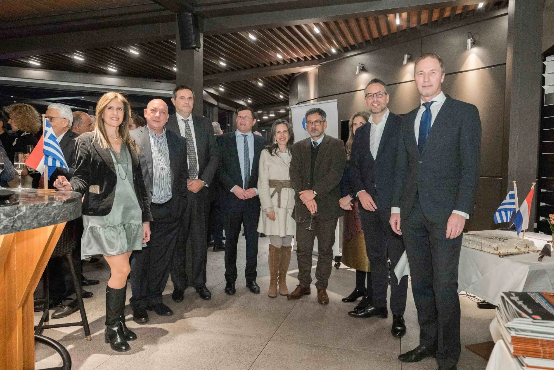 Η δεξίωση, που έγινε προς τιμήν των μελών του Συνδέσμου, συνεργατών και φίλων, παρουσία του Αναπληρωτή Επικεφαλής της Αρχής της Πρεσβείας του Βασιλείου της Ολλανδίας στην Ελλάδα κ. Maurits te Kuile, επιχειρηματικών και διπλωματικών αντιπροσωπειών Ελλάδας και Ολλανδίας, αποτέλεσε απτή απόδειξη ισχυρών διμερών σχέσεων.