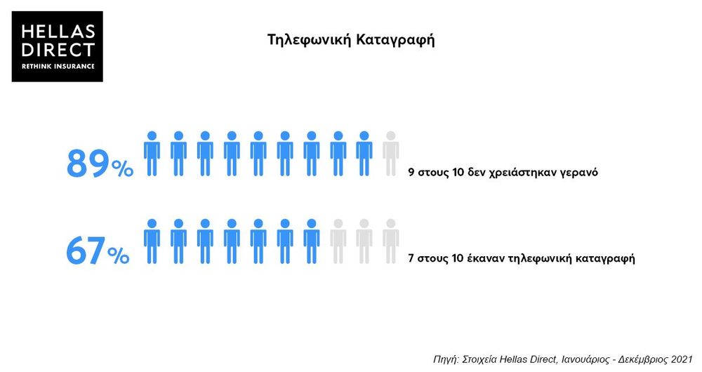 Από αυτούς, επτά στους δέκα επέλεξαν τηλεφωνική καταγραφή. Αφενός γιατί το 212 2229900, η τηλεφωνική γραμμή της Hellas Direct για ζημιές, λειτουργεί καθημερινά και όλο το 24ωρο. Που σημαίνει πως θα μας βρεις όποια μέρα και ώρα μας χρειαστείς. Όχι ώρες γραφείου, ούτε μόνο εργάσιμες. Και Πρωτοχρονιά. Και Δεκαπενταύγουστο. Και Καθαρά Δευτέρα μεσημέρι, και παραμονή Χριστουγέννων νύχτα. Πάντα.