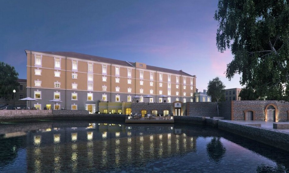 Στην πιο ωραία γωνιά της πόλης, απέναντι από το πάρκο της Αγίας Βαρβάρας, όπως μας ενημέρωσαν ότι λέγεται αυτός ο μαγευτικός υδροβιότοπος, ολοκληρώνει της εργασίες του το πρώτο πεντάστερο ξενοδοχείο της πόλης. Ένα επιβλητικό διατηρητέο κτίριο, πρώην καπναποθήκη, που ένας κρητικός επιχειρηματίας είχε το πείσμα και το όραμα να το μετατρέψει σε σημείο αναφοράς στην πόλη.