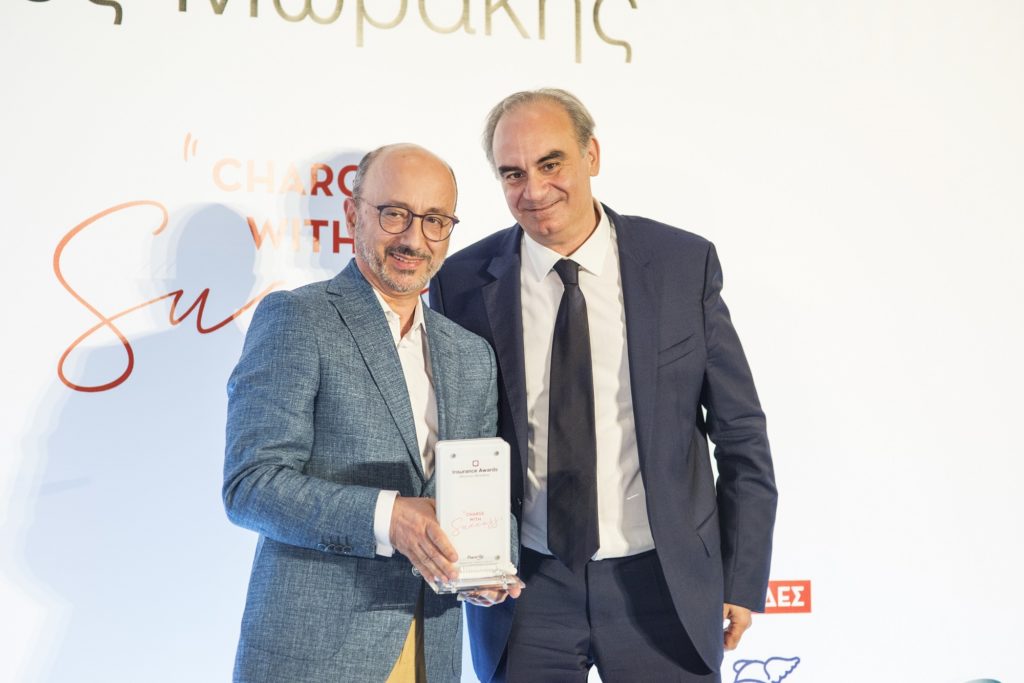 Πληρέστερη Έκθεση Βιώσιμης Ανάπτυξης στην Ασφαλιστική Αγορά της Interamerican. Ο Γιάννης ΡΟύντος παραλαμβάνει το βραβείο του από τον κ. Τσούλο.