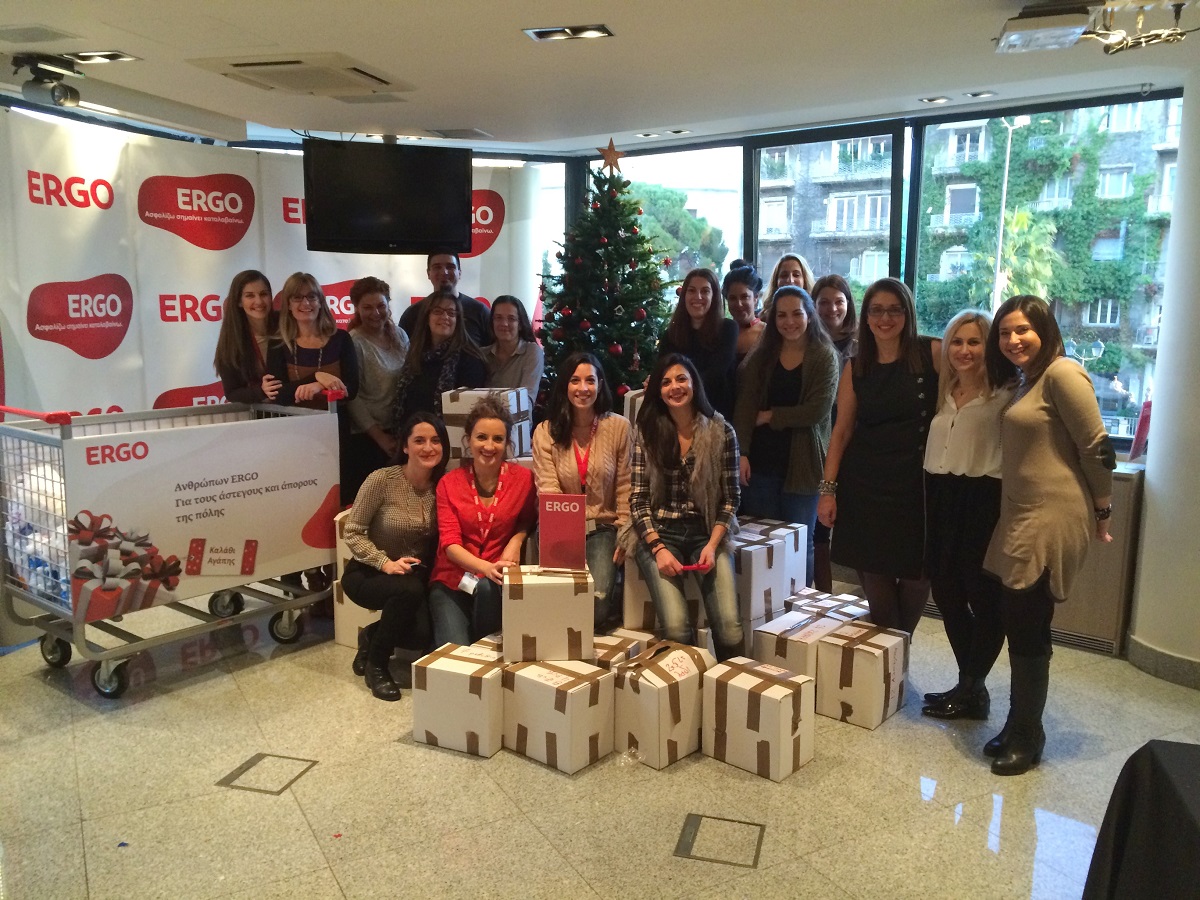 Με δύο συμβολικές δράσεις σε Αθήνα και Θεσσαλονίκη για τη στήριξη των άστεγων και άπορων συνανθρώπων μας καθώς και των παιδιών με καρκίνο, που απηχούν το μήνυμα Ανθρώπων ΕΡΓΟ, ολοκληρώνει για το 2015 η ERGO τις ενέργειες Εταιρικής Κοινωνικής Ευθύνης.