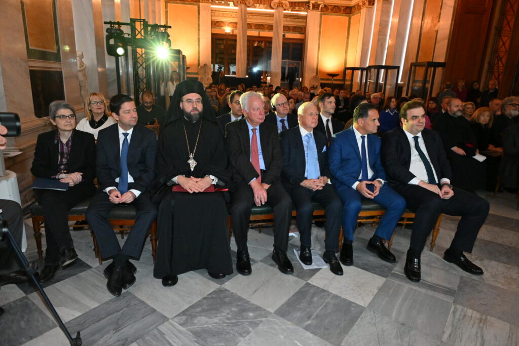 Την ημερίδα άνοιξε ο Πρόεδρος της Ακαδημίας Αθηνών κ. Μιχάλης Τιβέριος και ακολούθησαν χαιρετισμοί από τον Γραμματέα Επί των Δημοσιευμάτων της Ακαδημίας Αθηνών κ. Αντώνιο Ρεγκάκο, τον Υπουργό Παιδείας και Θρησκευμάτων κ. Κυριάκο Πιερρακάκη, τον εκπρόσωπο του Μακαριωτάτου Αρχιεπισκόπου Αθηνών Αρχιμανδρίτη Πατήρ Ισίδωρο Κάτσο, την Αντιπρύτανη του ΕΚΠΑ κ. Σοφία Παπαϊωάννου, καθώς και από τον Πρόεδρο και Διευθύνοντα Σύμβουλο της ΕΥΡΩΠΗ Ασφαλιστική κ. Νίκο Μακρόπουλο.