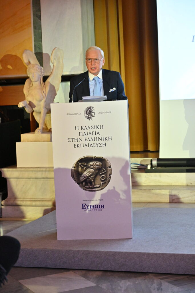 Η ημερίδα, που πραγματοποιήθηκε στην Ανατολική αίθουσα της Ακαδημίας Αθηνών, είχε ως στόχο να αναδείξει τη διαχρονική αξία της ελληνικής γλώσσας και της κλασικής παιδείας εστιάζοντας στις σύγχρονες προκλήσεις που αντιμετωπίζει η διδασκαλία των Αρχαίων Ελληνικών στην Ελλάδα καθώς και στην ανάγκη επανίδρυσης των κλασικών Λυκείων.