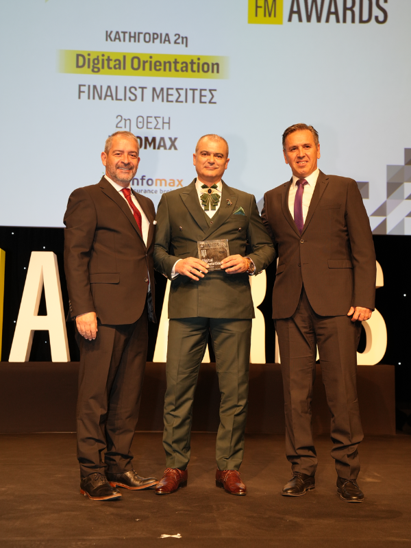 Η Infomax απέσπασε την δεύτερη θέση στην κατηγορία Digital Orientation, επιβραβεύοντας τη στρατηγική της για την εφαρμογή πρωτοποριακών ψηφιακών λύσεων στον ασφαλιστικό τομέα. Αυτή η διάκριση αποτελεί επιστέγασμα των προσπαθειών της εταιρείας να χρησιμοποιήσει τη σύγχρονη τεχνολογία για την αναβάθμιση των υπηρεσιών της, προσφέροντας έτσι μια βελτιωμένη εμπειρία στους πελάτες της και τους συνεργάτες της μέσω της ψηφιοποίησης των διαδικασιών και της συνεχούς εξέλιξης των ψηφιακών εργαλείων.