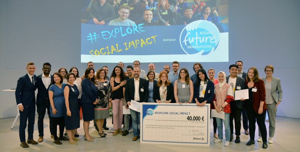 Οι 8 ομάδες ανέπτυξαν τα επιχειρηματικά τους σχέδια μπροστά σε μια κριτική επιτροπή αποτελούμενη από ειδικούς επιστήμονες από το Impact Hub, τα Παιδικά Χωριά SOS, την κοινωνική εταιρεία επενδύσεων BonVenture και την Allianz στην έδρα της Allianz στο Μόναχο την Παρασκευή 19.07.2019.