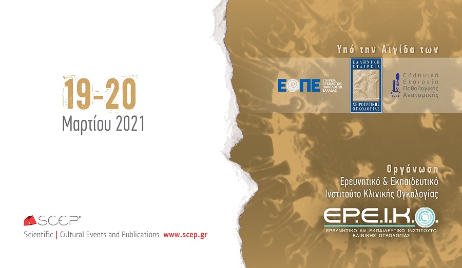 Το “Διαδικτυακό Συνέδριο Θεραπευτικών Εξελίξεων στην Ογκολογία” θα διεξαχθεί την Παρασκευή 19 Μαρτίου 2021, ώρα 09:30, και το Σάββατο 20 Μαρτίου 2021, ώρα 09:00.