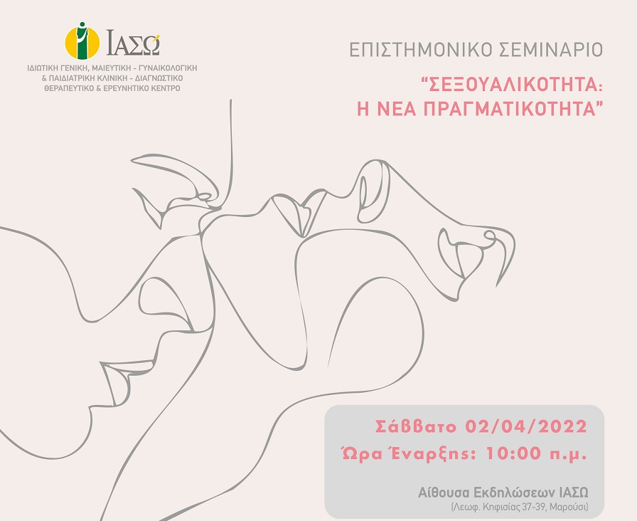 Το ΙΑΣΩ, διοργανώνει Επιστημονικό Σεμινάριο με θέμα Σεξουαλικότητα: Η νέα πραγματικότητα , το Σάββατο 02 Απριλίου 2022 και ώρα 10:00 π.μ., στην Αίθουσα Εκδηλώσεων του ΙΑΣΩ.