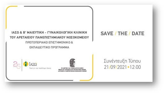 Το ΙΑΣΩ ενώνει τις δυνάμεις του με την Β’ Μαιευτική – Γυναικολογική Κλινική του Αρεταίειου Πανεπιστημιακού Νοσοκομείου και την Τρίτη 21 Σεπτεμβρίου 2021 και ώρα 12:00 θα πραγματοποιηθεί Συνέντευξη Τύπου στην Αίθουσα Εκδηλώσεων του ΙΑΣΩ (Λεωφόρος Κηφισίας 37-39, Μαρούσι) με θέμα «ΙΑΣΩ: Πρωτοποριακό Επιστημονικό & Εκπαιδευτικό Πρόγραμμα σε συνεργασία με την Β’ Μαιευτική – Γυναικολογική Κλινική του Αρεταίειου Πανεπιστημιακού Νοσοκομείου».