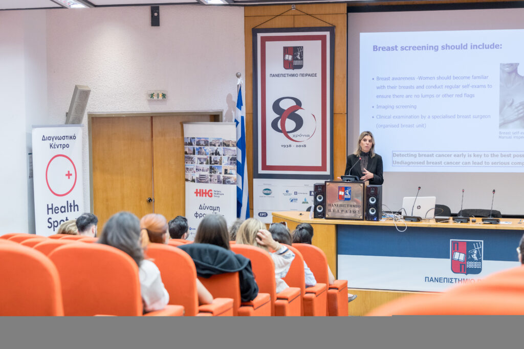 Το Πανεπιστήμιο Πειραιώς, σε συνεργασία με το ασφαλιστικό γραφείο ΠΑΡΟΝ, και την υποστήριξη των Διαγνωστικών Κέντρων Health Spot by HHG, διοργάνωσε με επιτυχία ημερίδα Ευαισθητοποίησης για τον Καρκίνο του Μαστού: